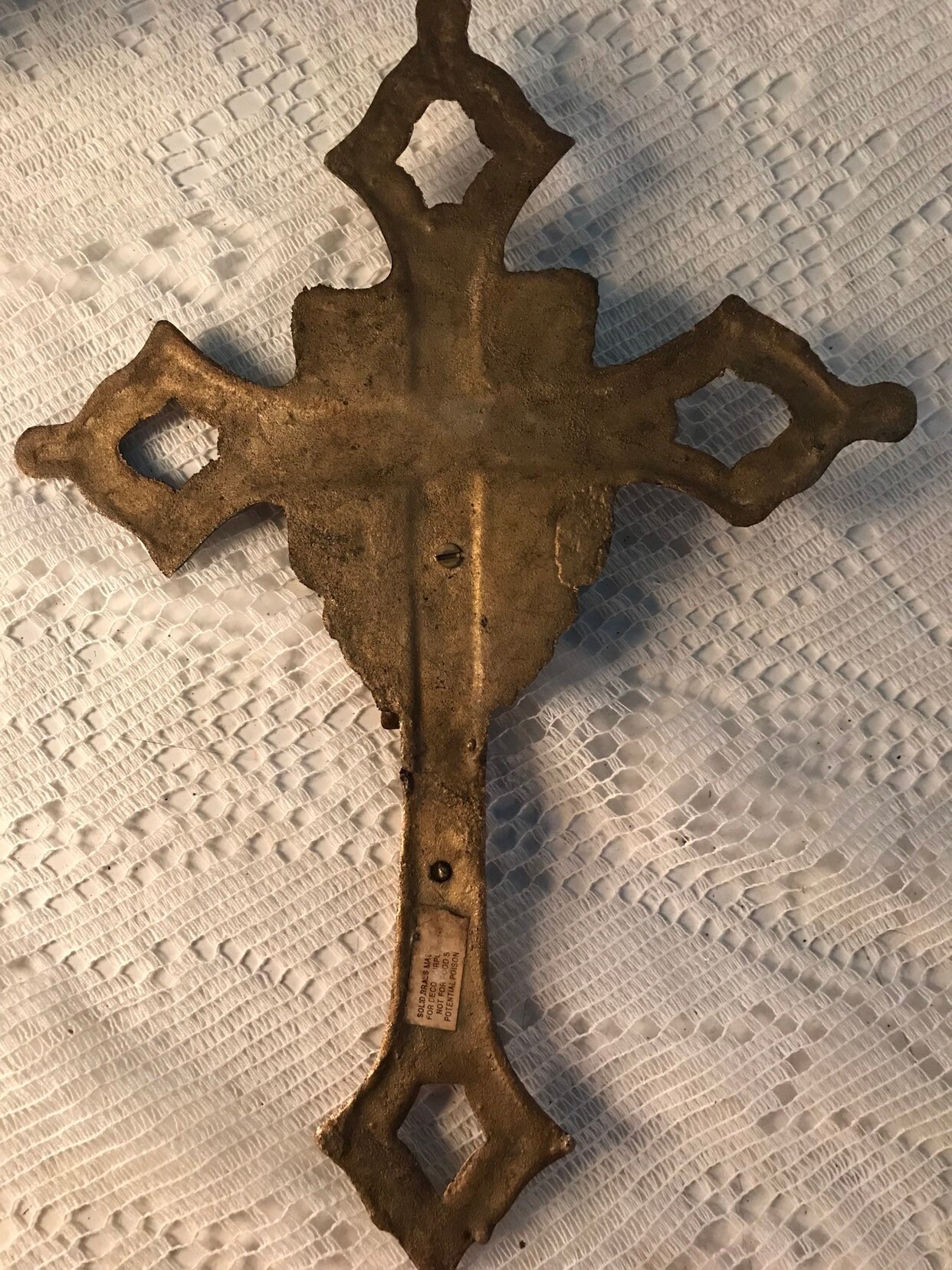 This is a very pretty brass crucifix, it could definitely use a nice polishing but I’ll leave that up to you. It’s a neat looking crucifix and in good vintage condition. I love anything brass as you can tell by my shop but I decided to let this piece go because it’s just a really cool crucifix.