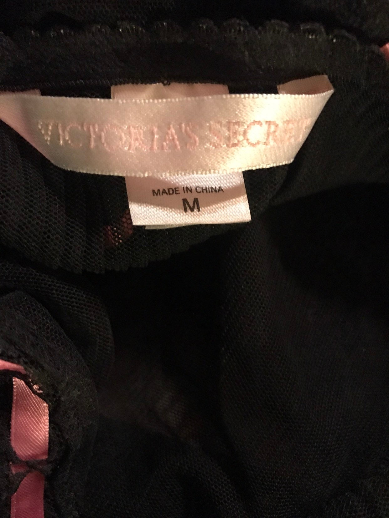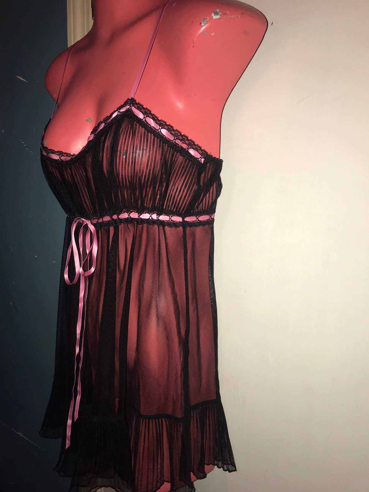 This is a very pretty short black and pink, sheer nightie by Victoria’s Secret. It has thin little adjustable straps and then it can be tightened under the bodice.It’s in good condition.
