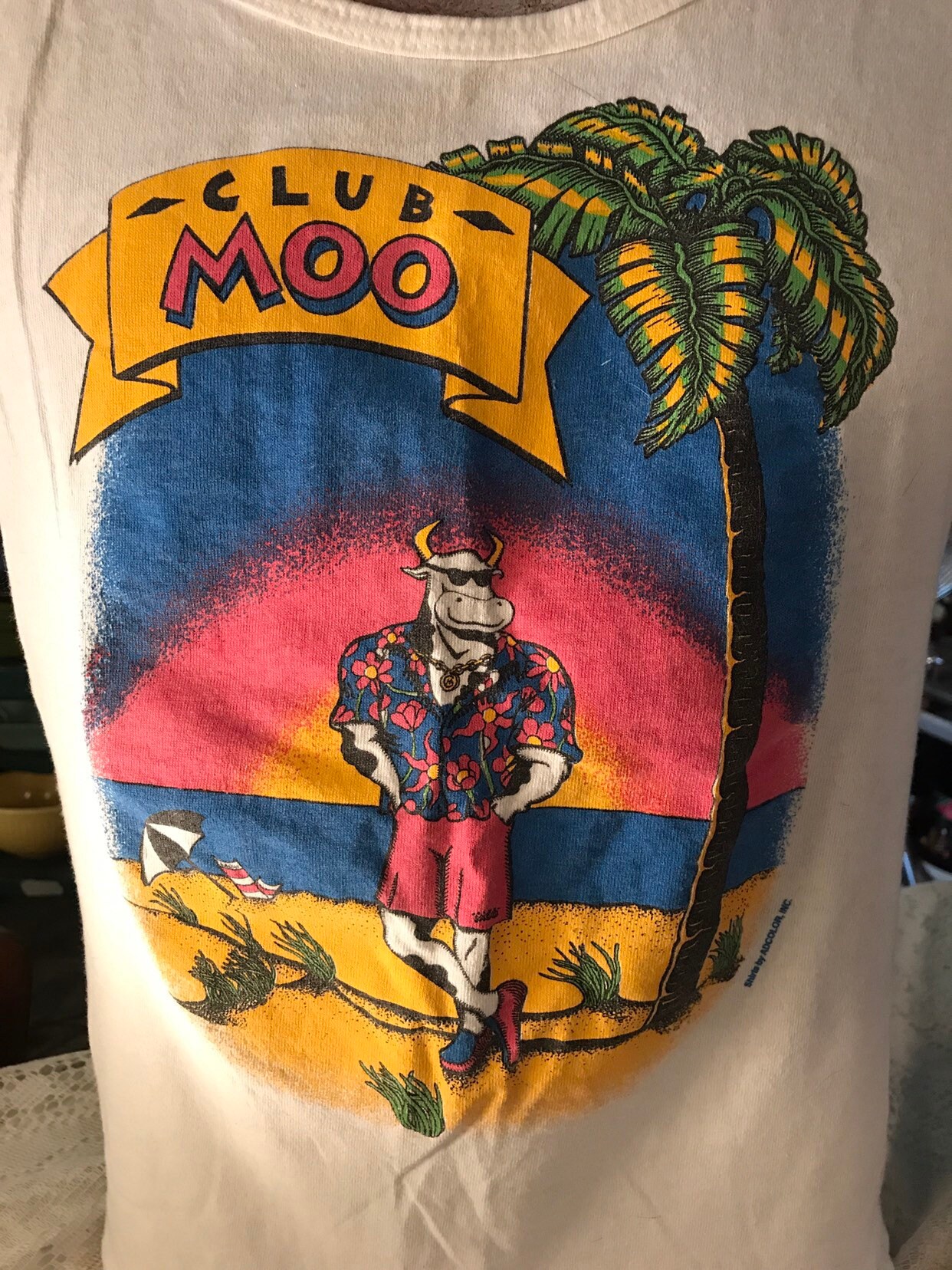 Not sure what that means, Lund maybe “Club eat all you want...” that’s no good lol. Who knows! It’s in good vintage condition, except you can see that little black smudge in that one photo, I believe it’ll come out in the wash.
