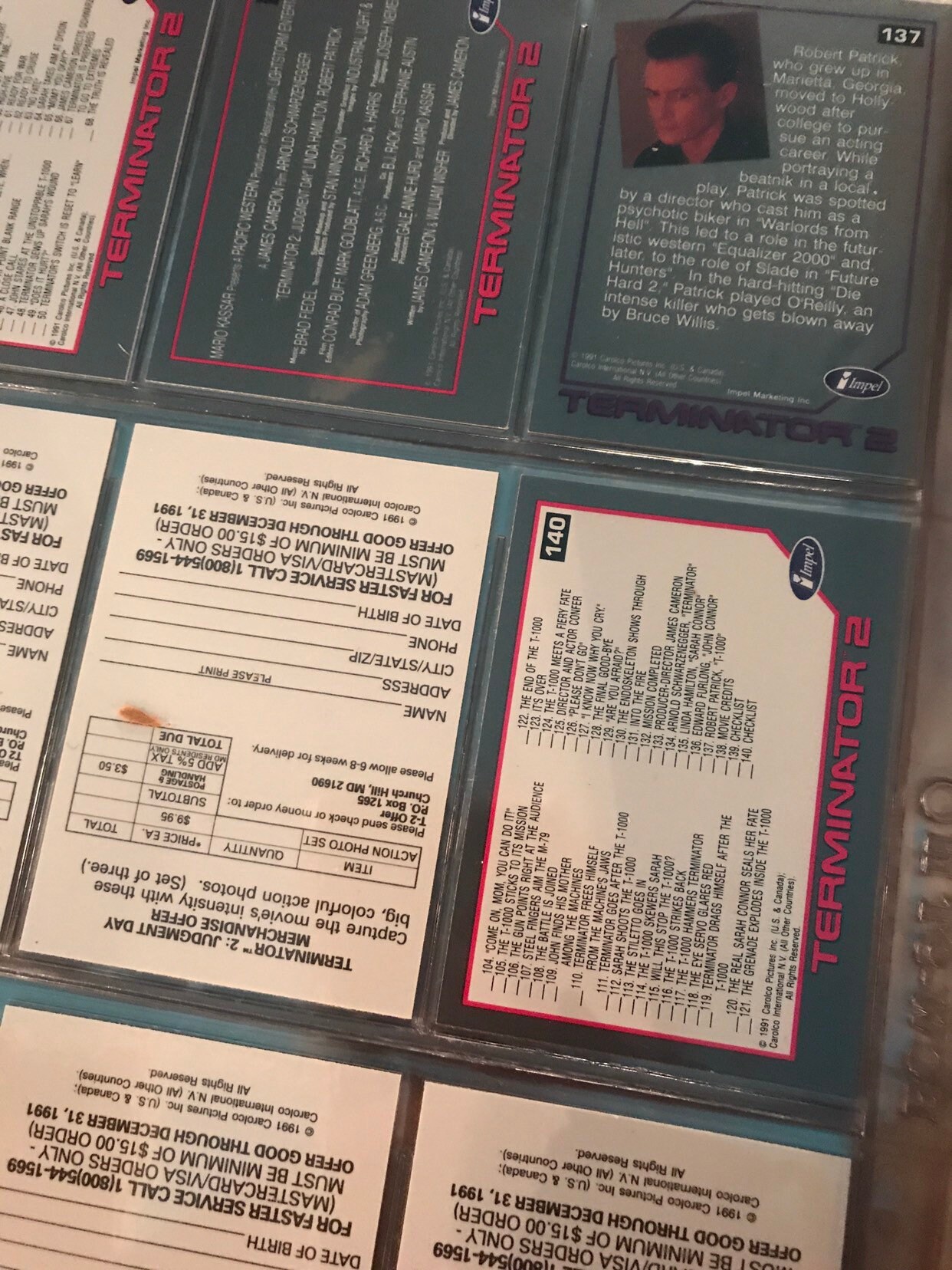 This listing is for 140, 1991 T2 movie card set. They are in order in the booklet they come in. Cards seem basically new.