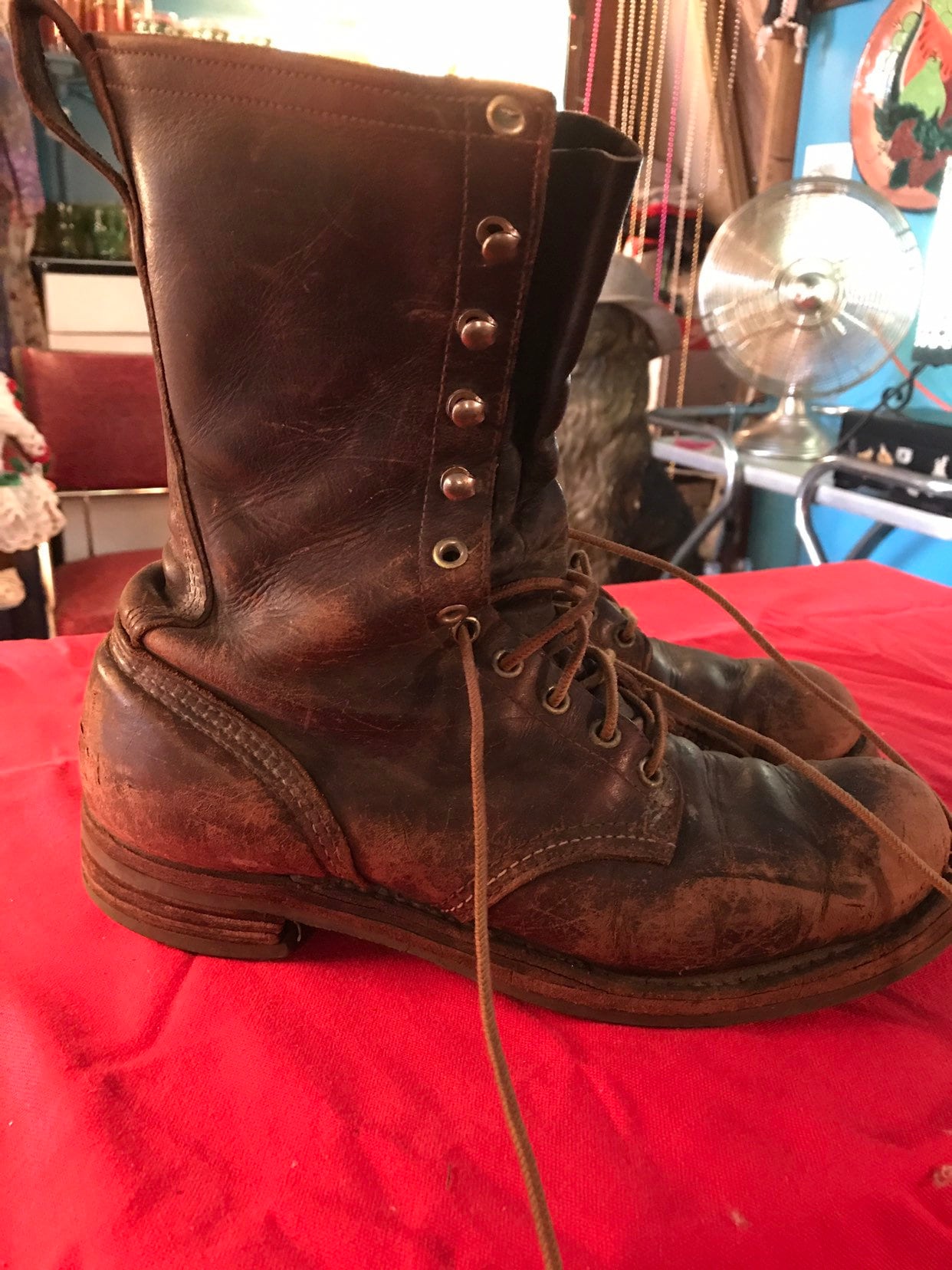 These are great boots! Red Wing Originals, made in the USA... a rarity these days. I believe they are a size 8 and just super cool. They are very distressed as you can see in the photos.