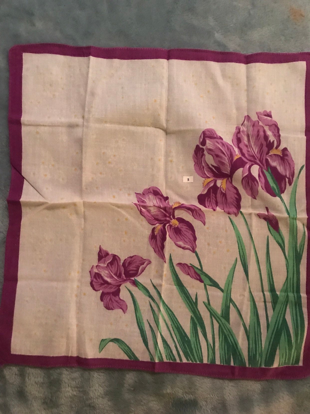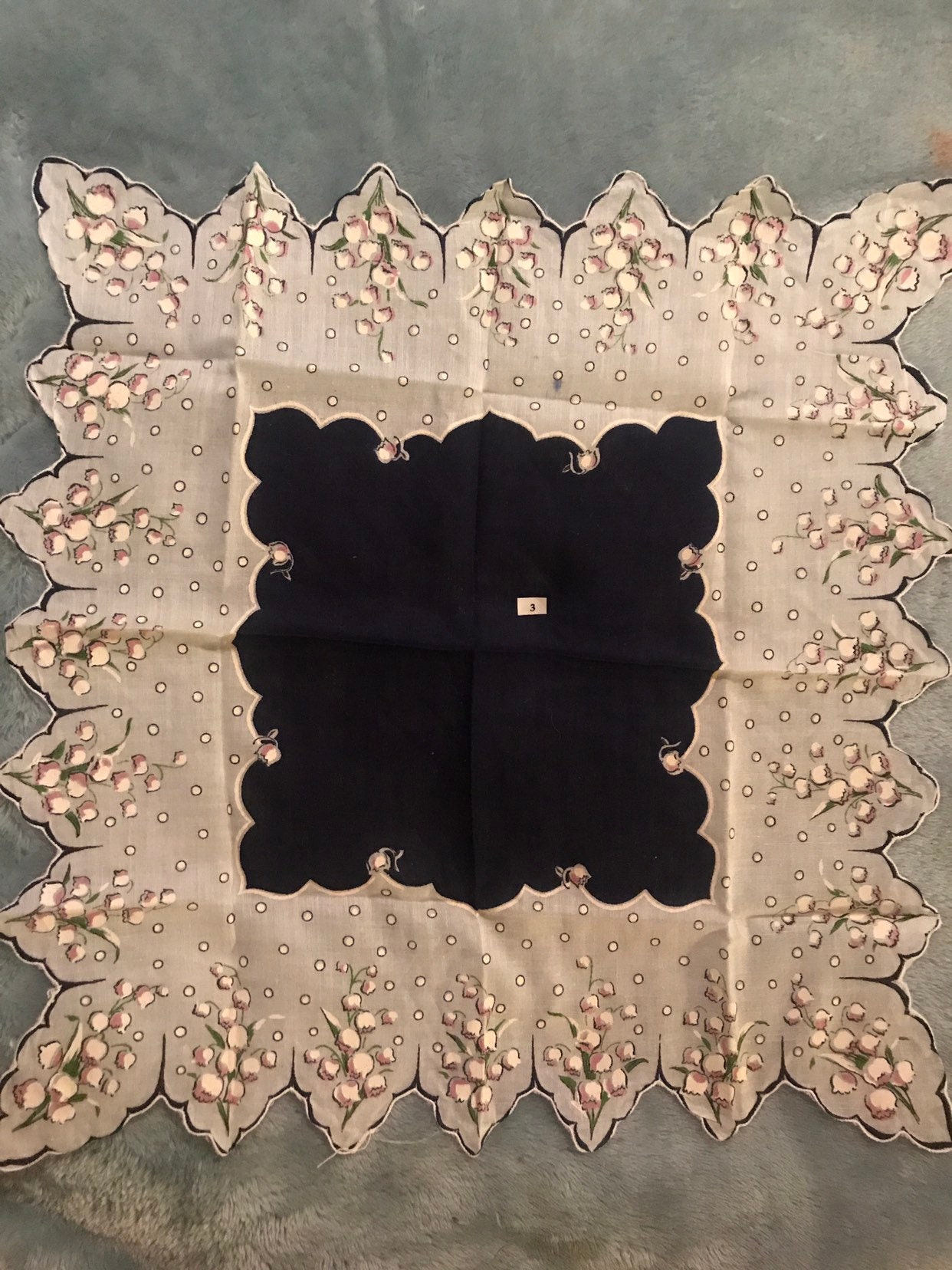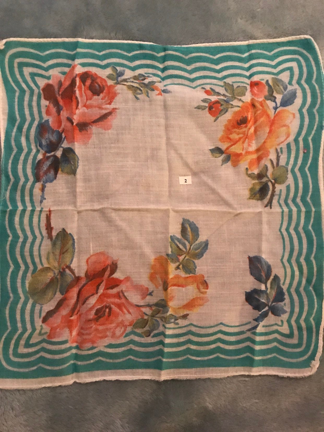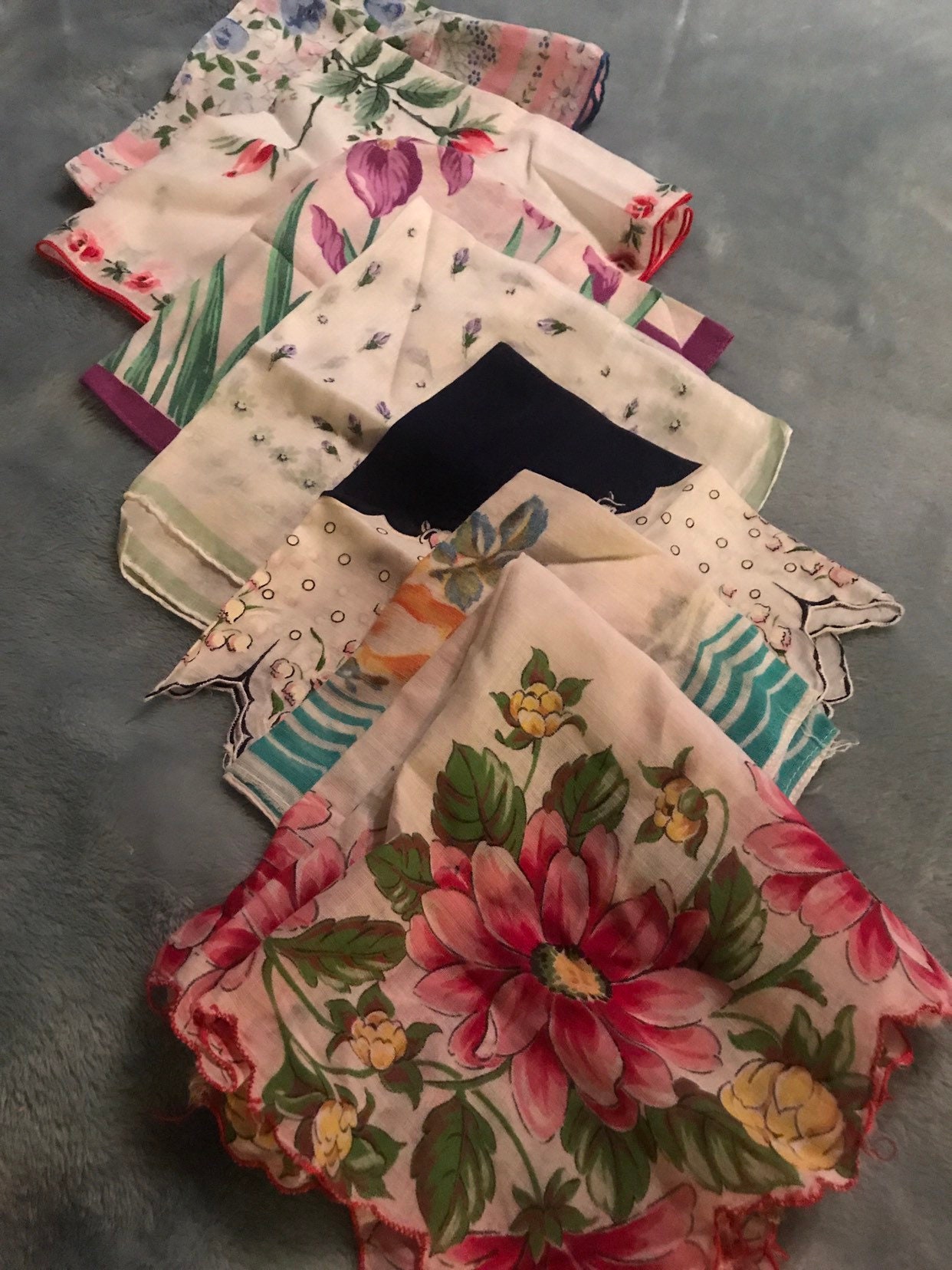Gorgeous 1950's handkerchiefs! The photos are taken in the order they are listed. With each numbered in the pic, although the numbers are small but can be seen well if you zoom in on the photo. They are all in good vintage condition.