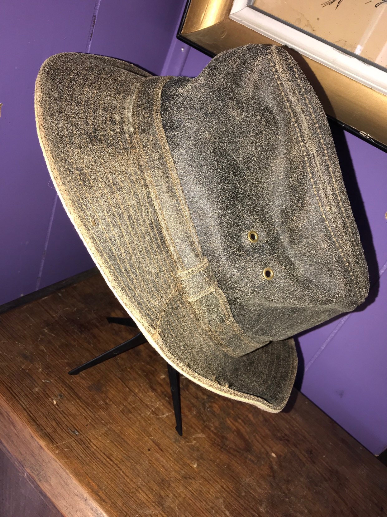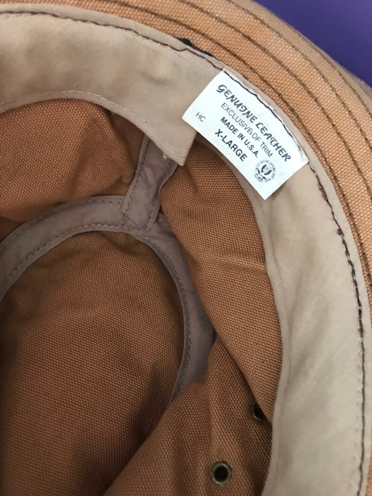 It’s in good vintage condition, the only issue is some dirt on the inside band (forehead area) there is no brand, it is 100% leather exclusive of lining/trim and it’s made in the US of A. A rarity these days.