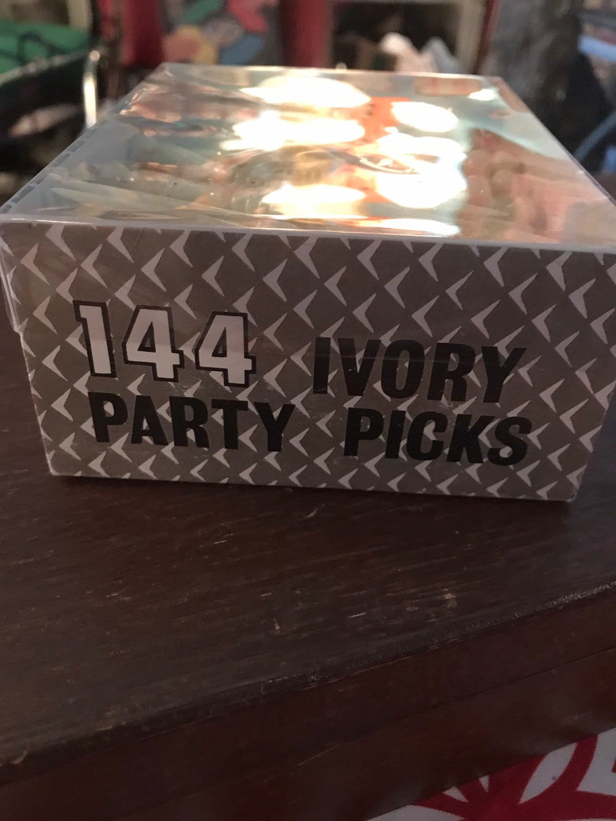 Nice set of plastic ivory party picks. The box originally had 144 picks but some are missing and now there are only 99. Set is in good vintage condition!
