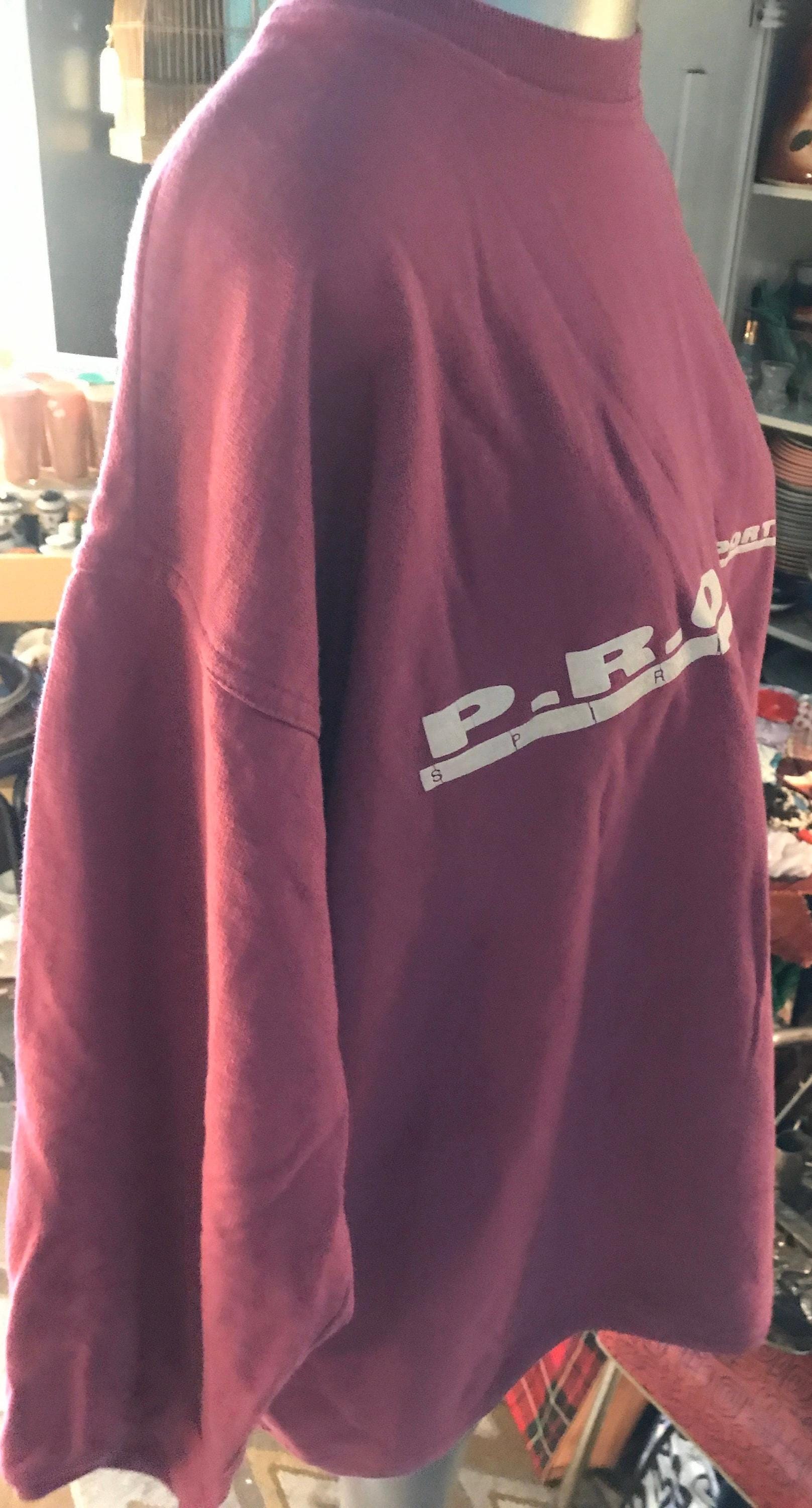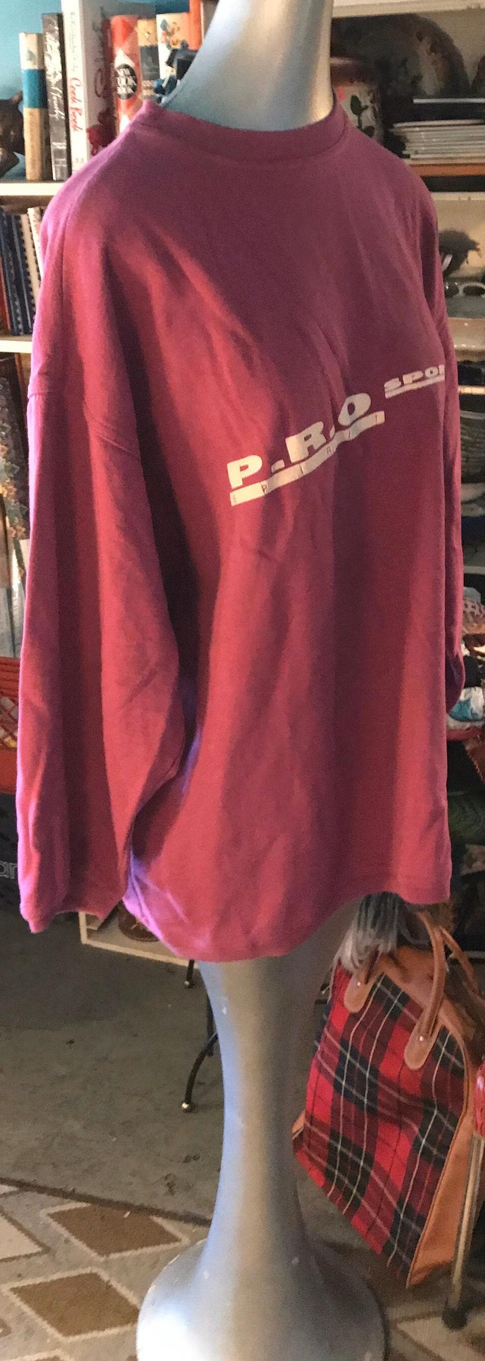 This is a really nice vintage 90’s made in USA purple sweatshirt. It’s like a thin sweatshirt material but looks more like a pullover shirt. It’s in good vintage condition!