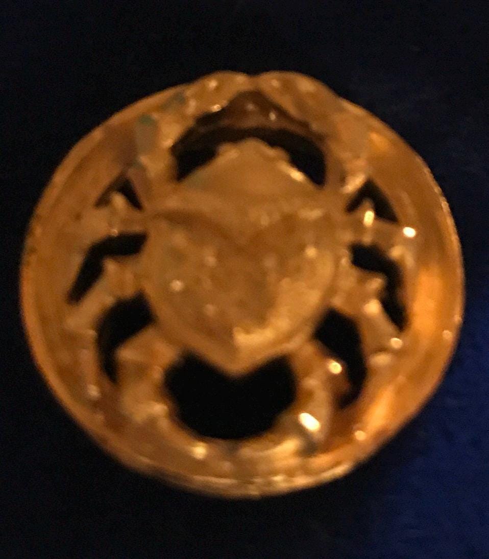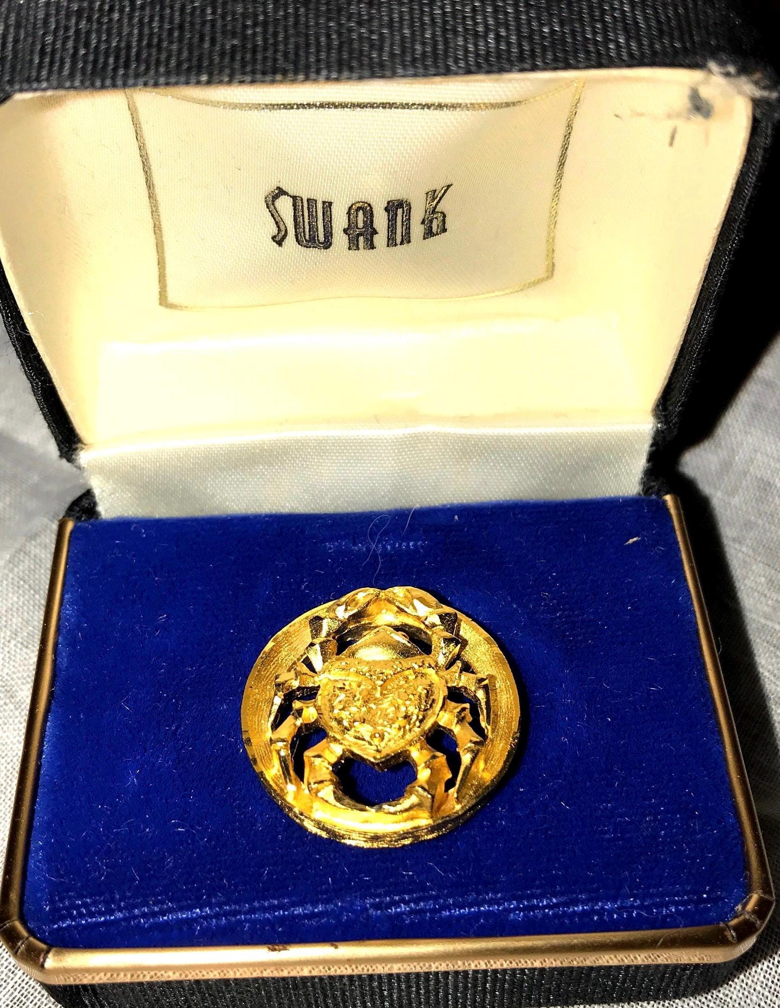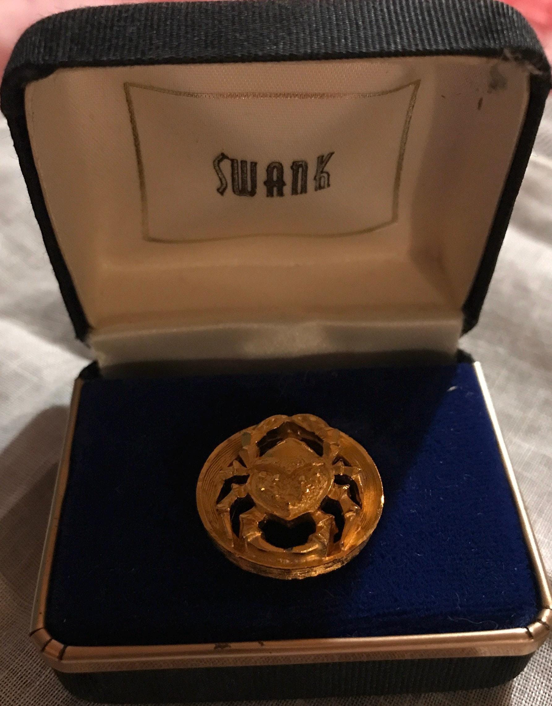 Nice 1960's Swank gold crab, Cancer tie tac. It is a brilliant glorious gold! Very cool! I love it. This would make a great gift for the Cancer man in your life, but especially the vintage lover! A wedding day gift, Fathers Day, Christmas, of course or just because. There isn’t a “Swank” marking on the back of it but it is fit greatly inside this Swank box so I’m sure it is Swank.