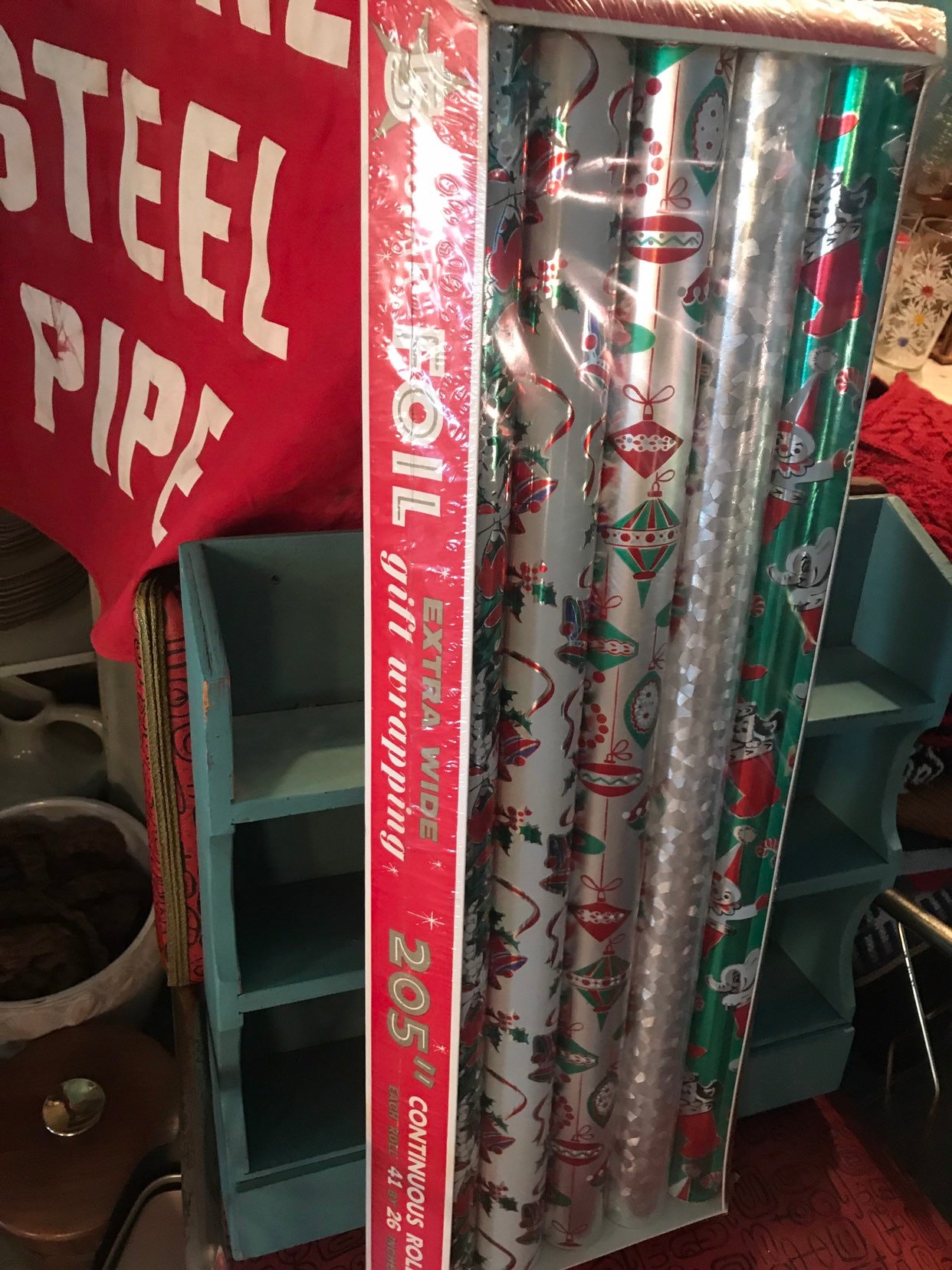 This listing is for one package of five new foil Christmas wrapping paper rolls. They are most likely from the 50’s or 60’s and are really great looking! It’s rare to find a whole set of this age that’s never been opened!