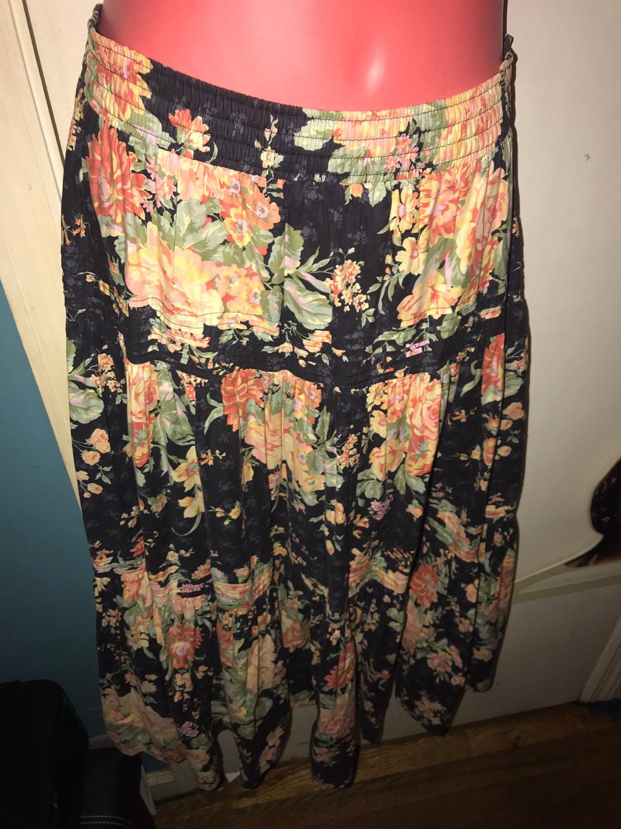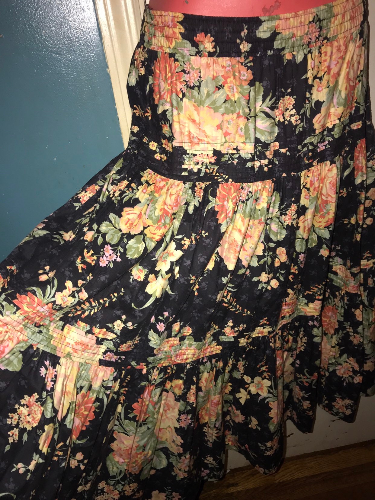 This is a great classic Laura Ashley floral pattern maxi skirt. It’s so awesome! it’s full and flowy so it flairs! It’s got an elastic waist for ultimate comfort! Very nice, in good vintage condition.