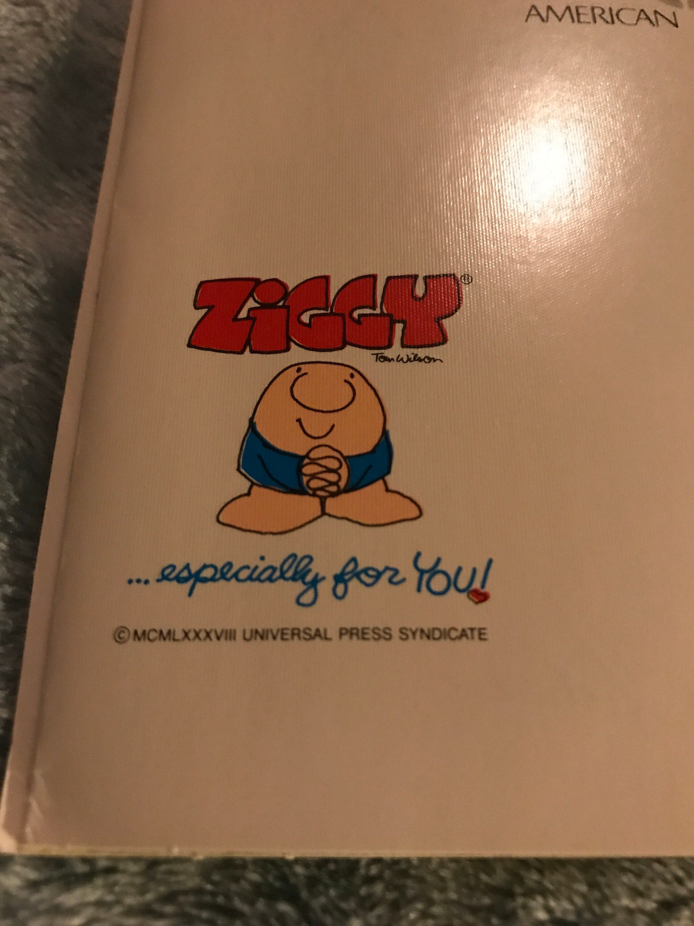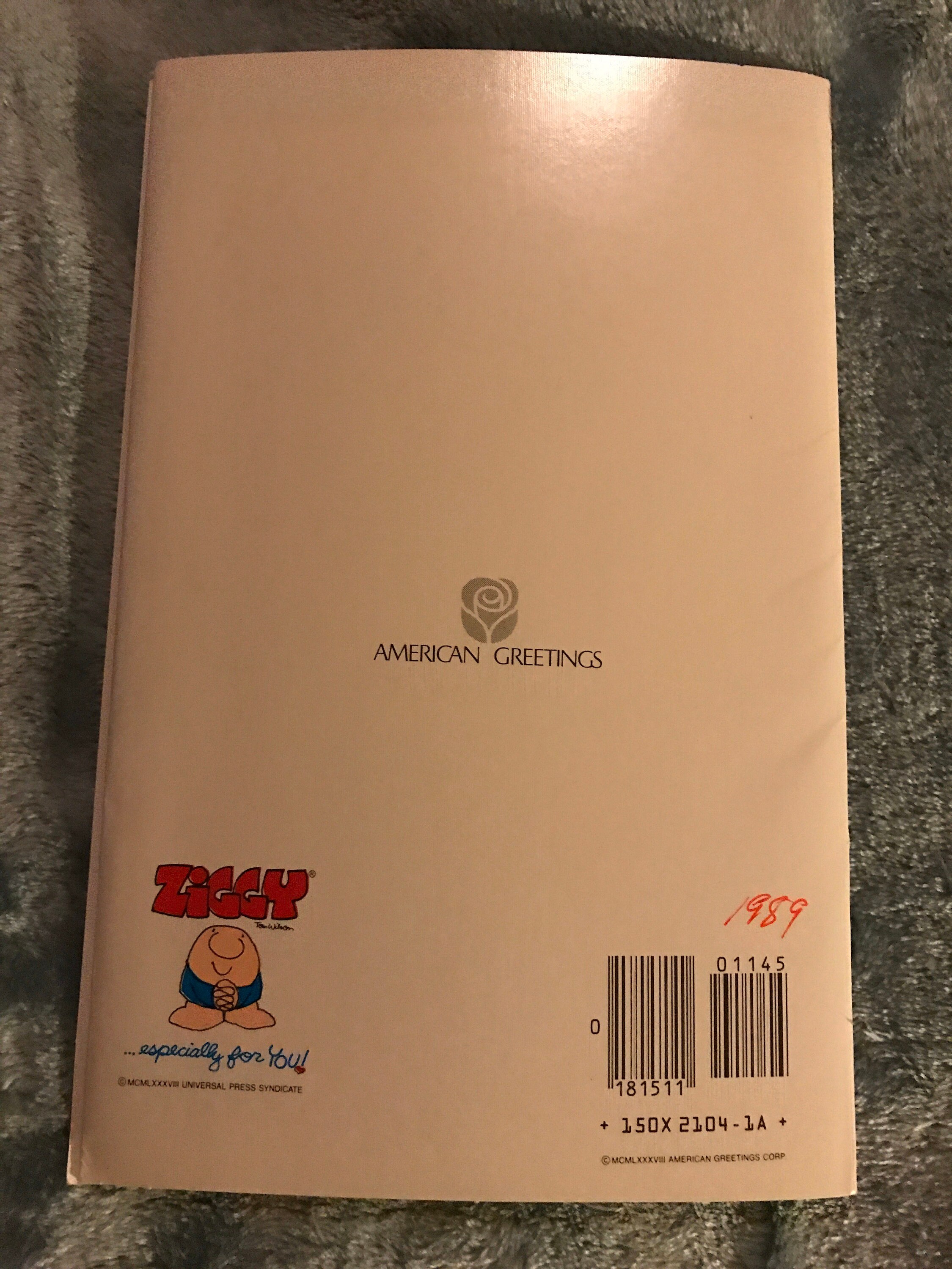 I love this 1989 Ziggy Christmas card! I love Ziggy stuff period. This card has been signed but it looks like it could easily be covered with white out or something.