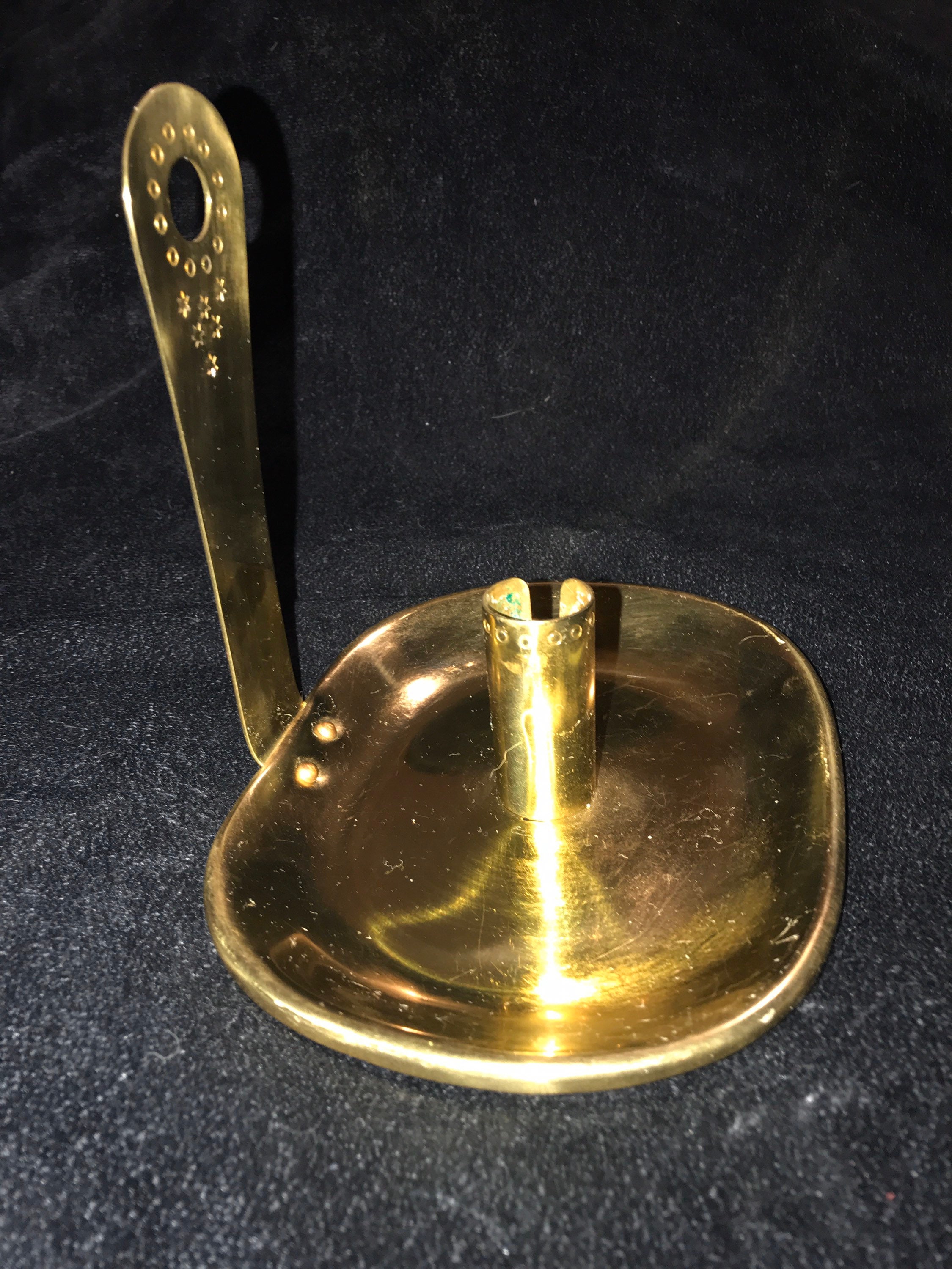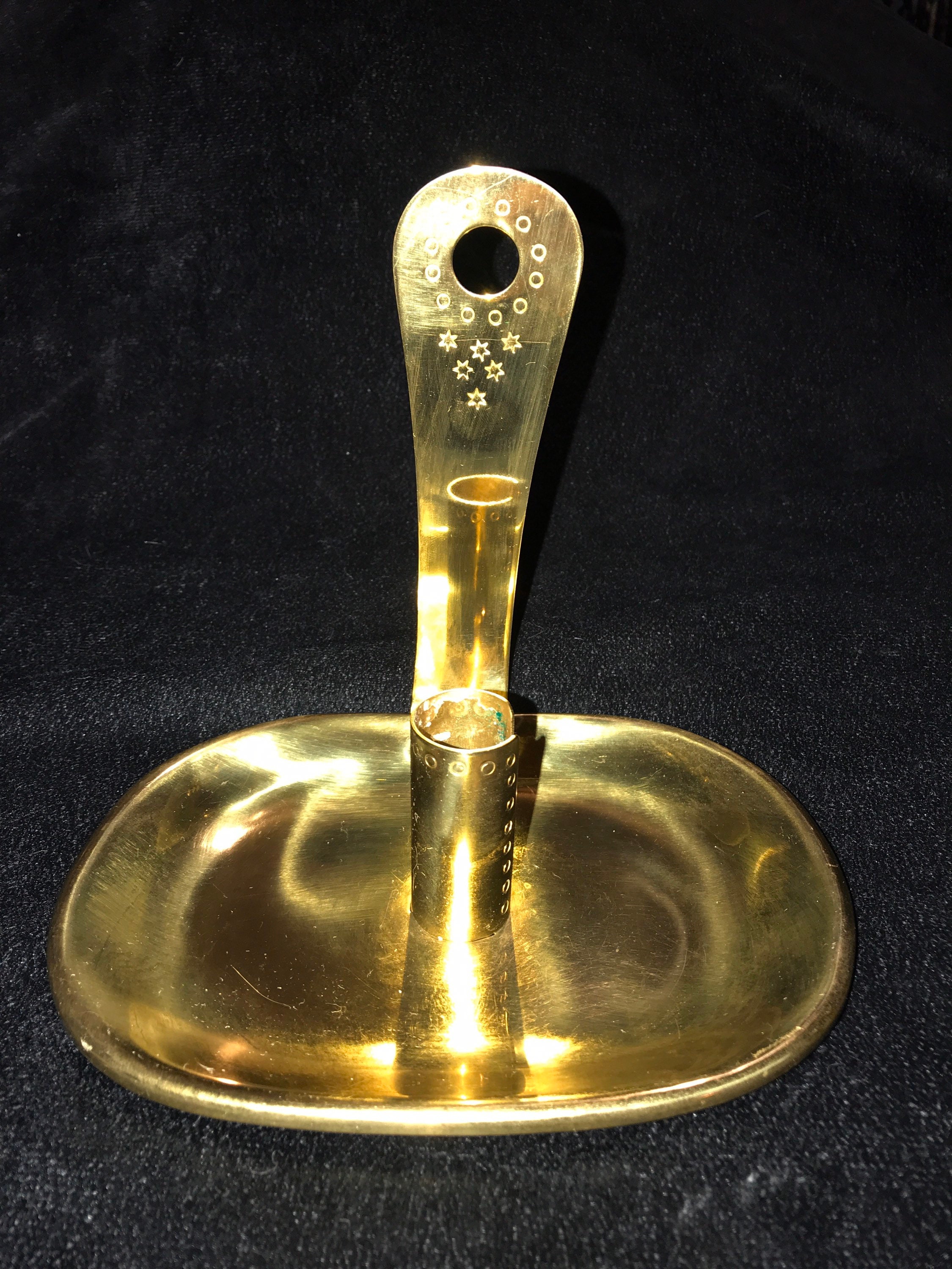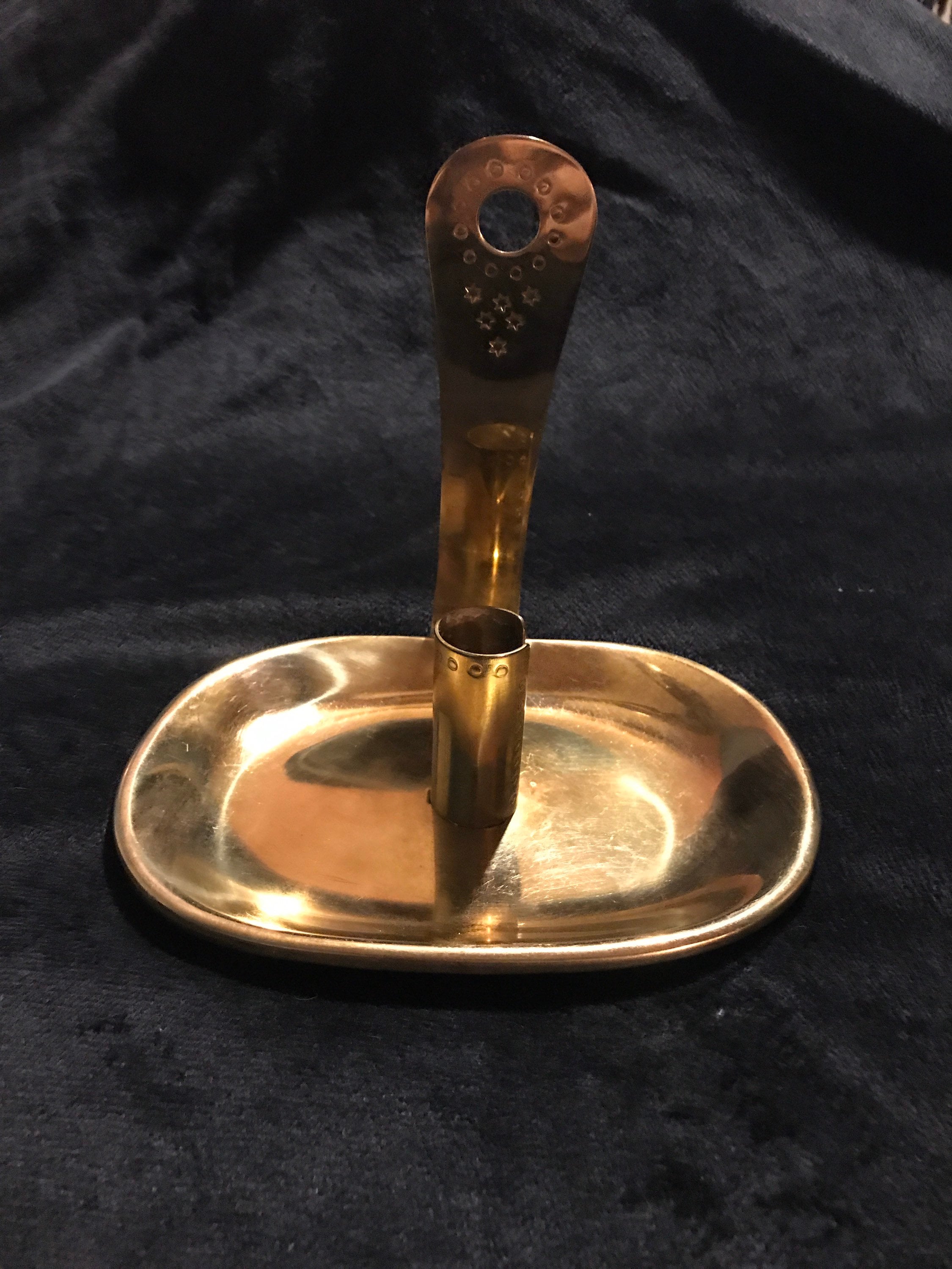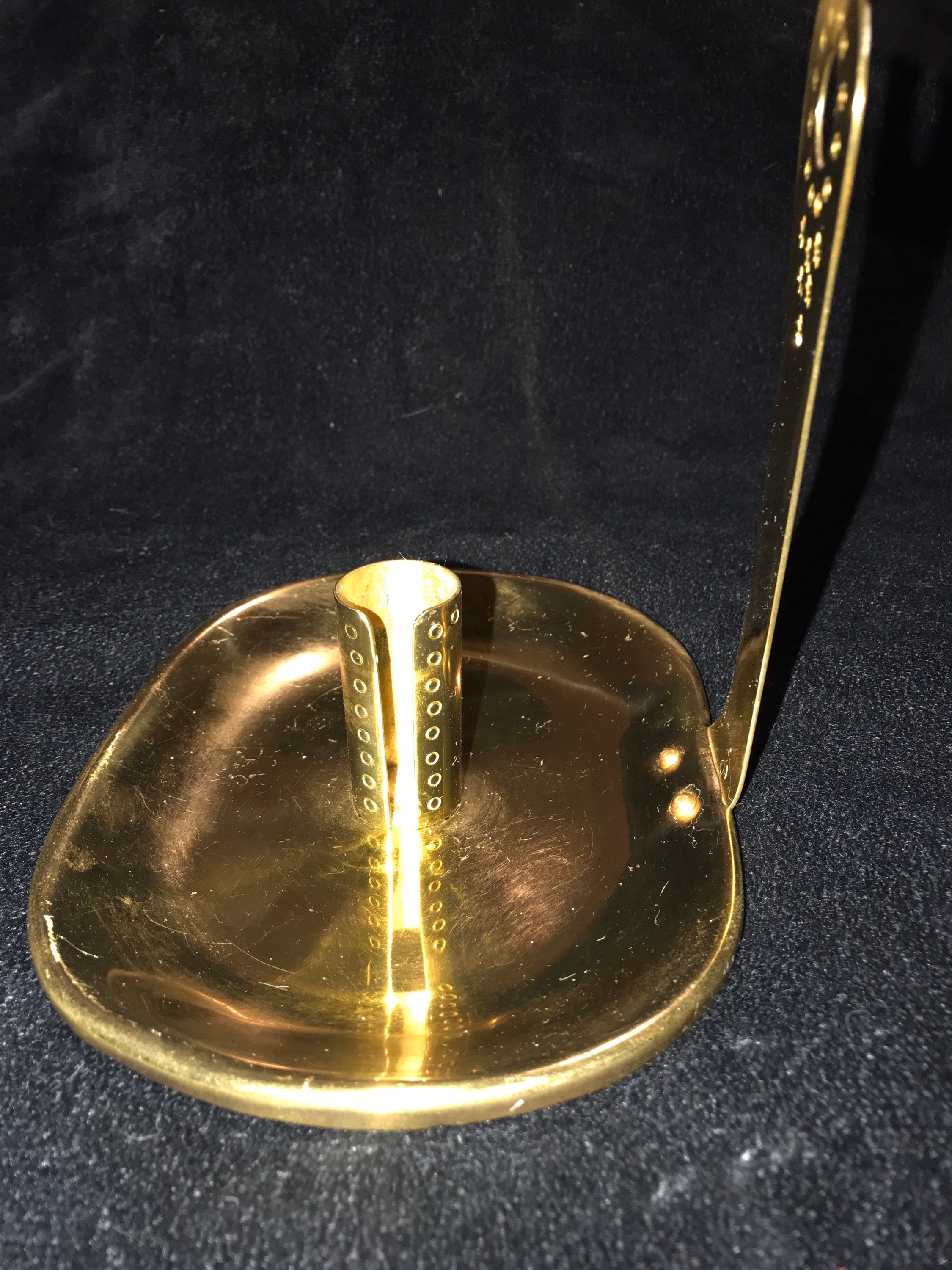 This is a nice Virginia Metalcrafters brass sconce candle holder. It would hold a taper candle. I assume it could hand on a wall. There is some minor surface wear on the brass but not too bad. It’s in good vintage condition.