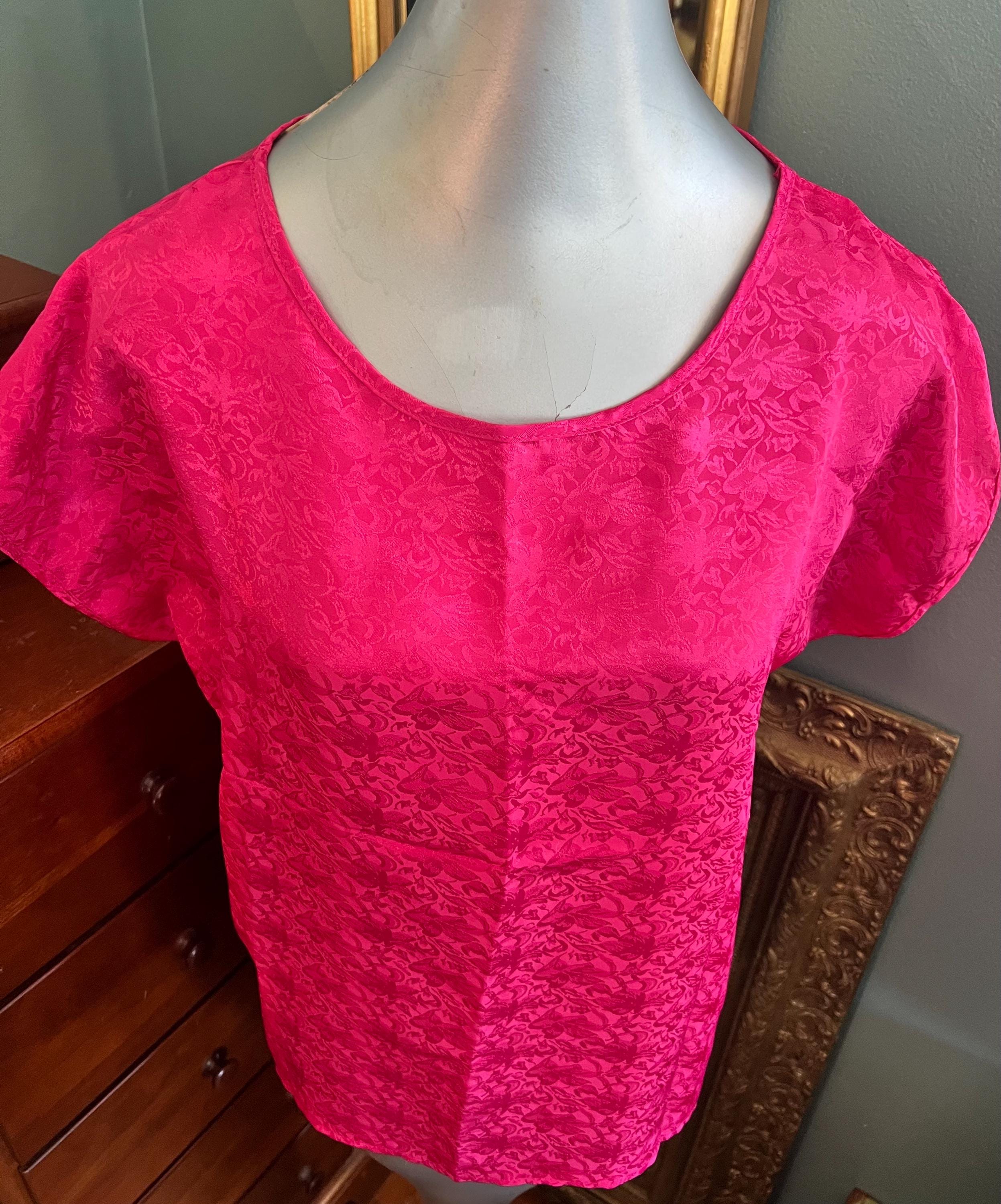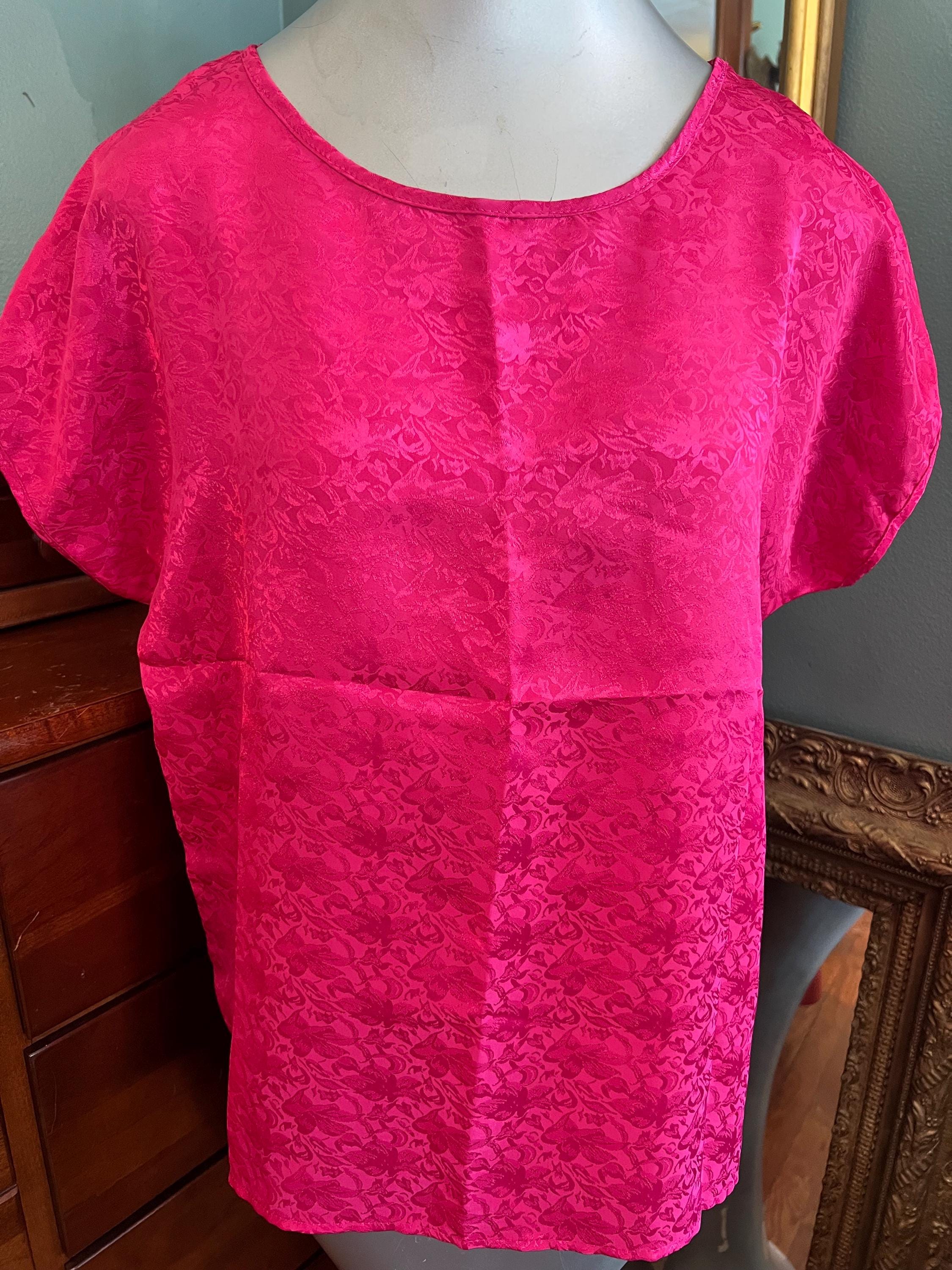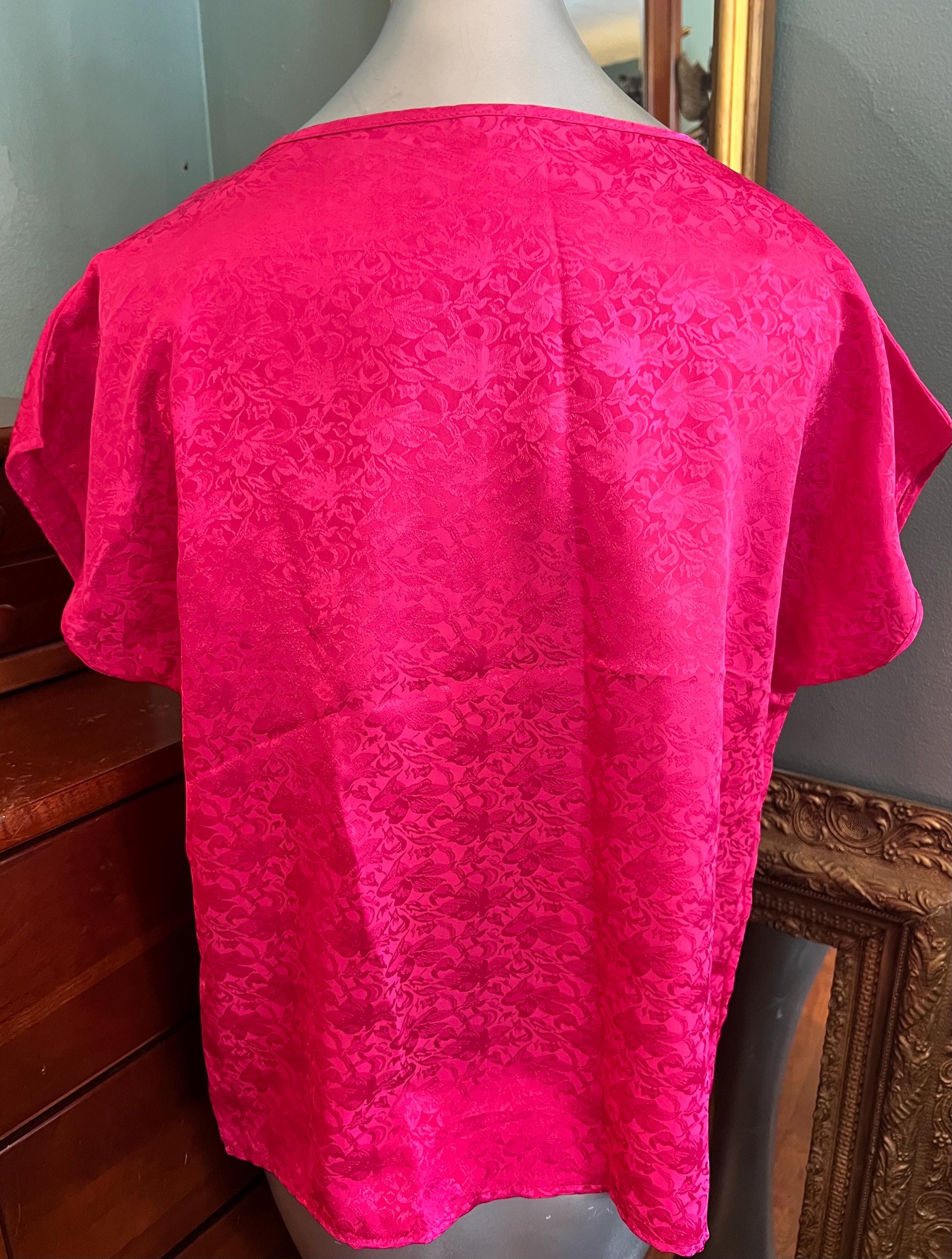 This is an awesome 80’s pink satin shirt. I love the look of it and the flowers in the material. It’s in good vintage condition.
