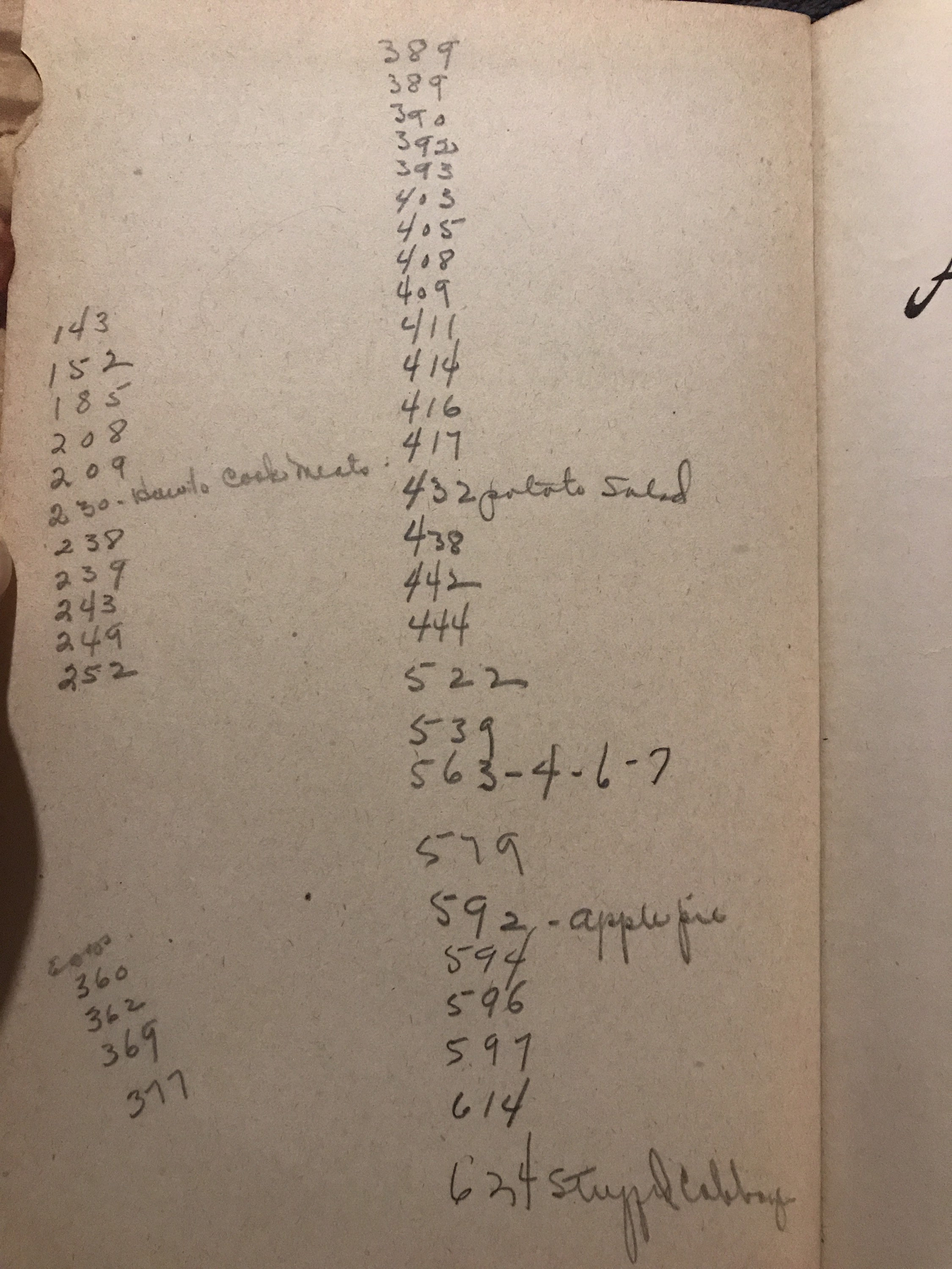 *a little bit of pencil writing in the front page, mostly just references recipes she liked I think.