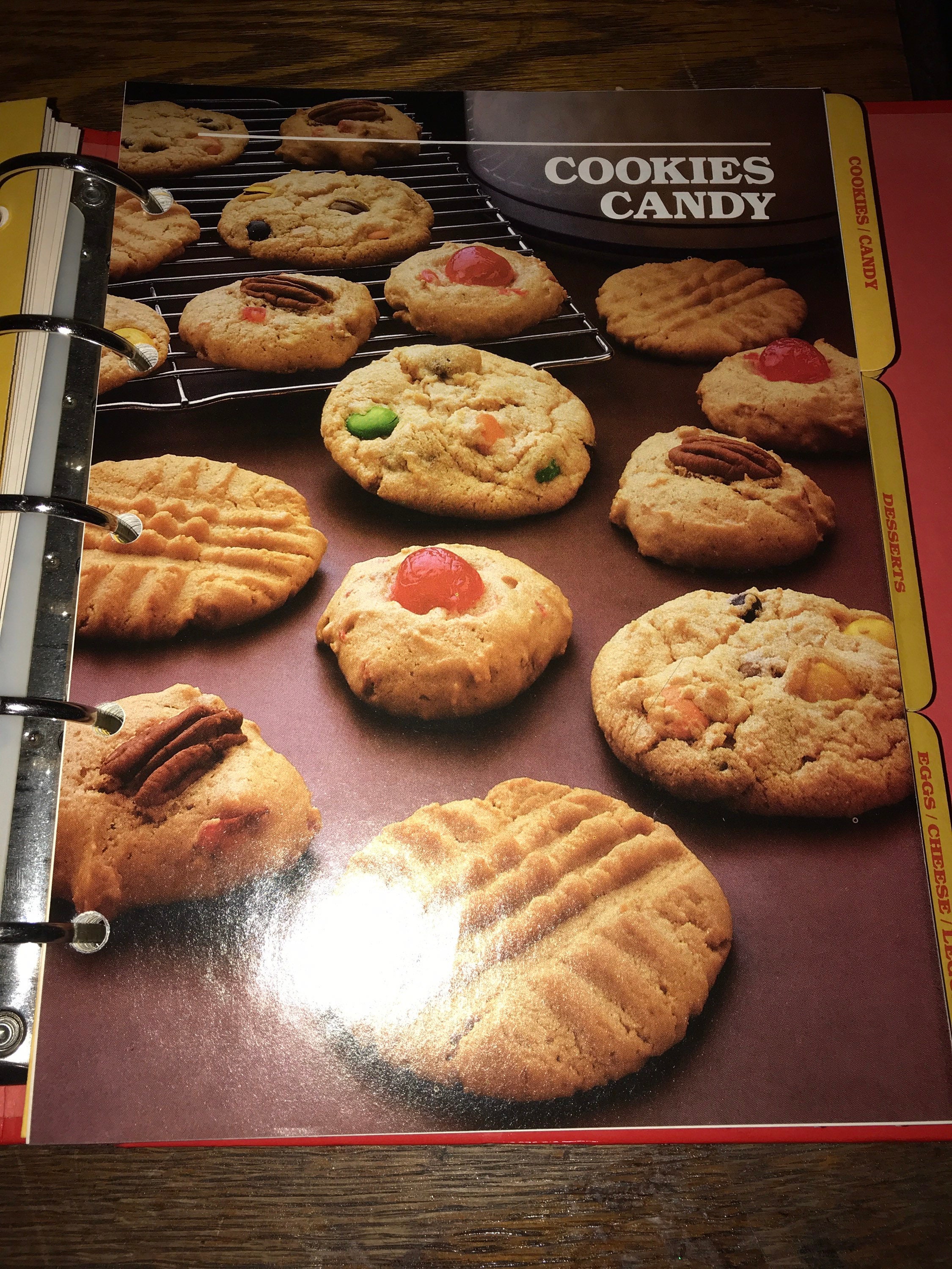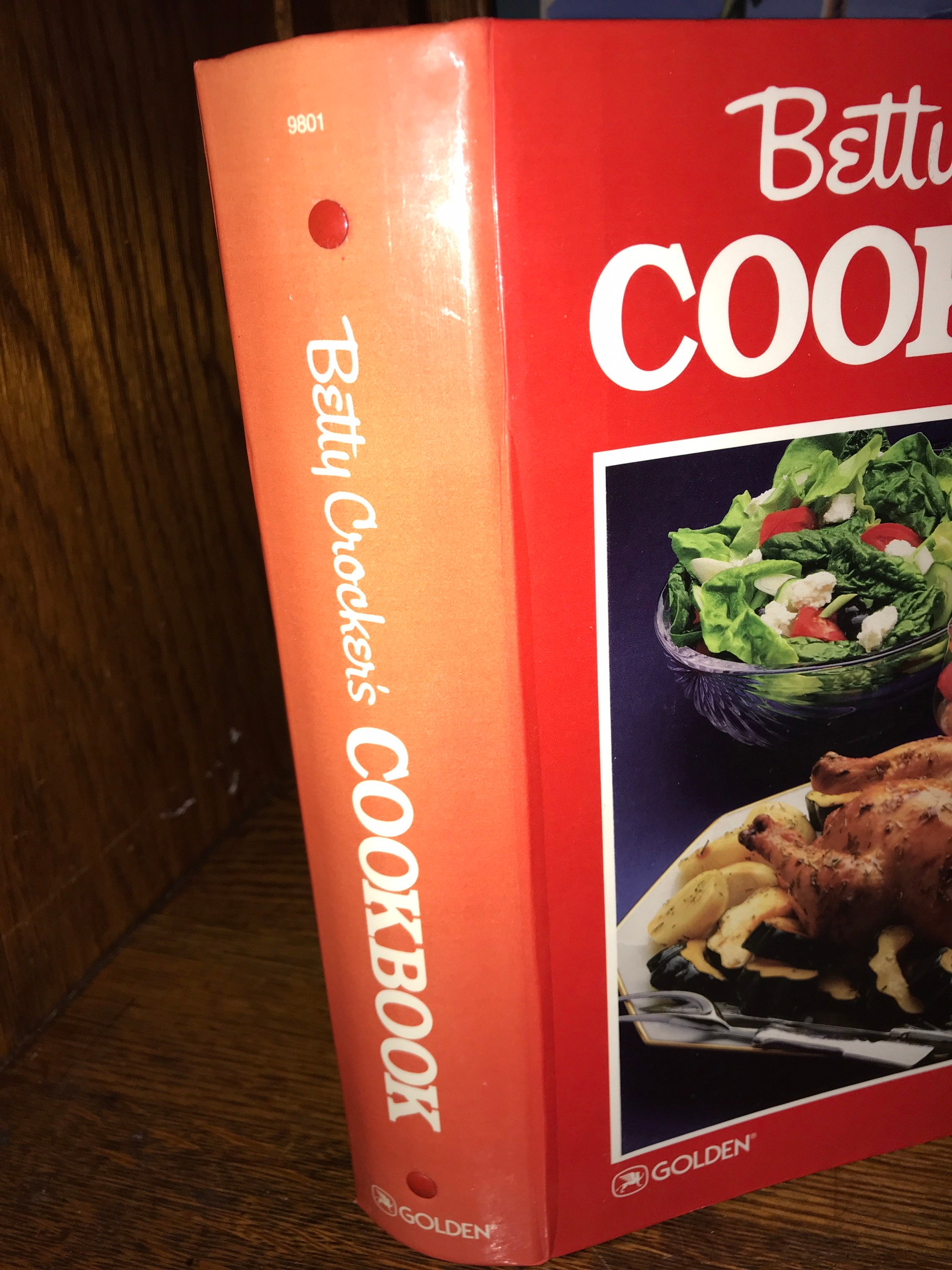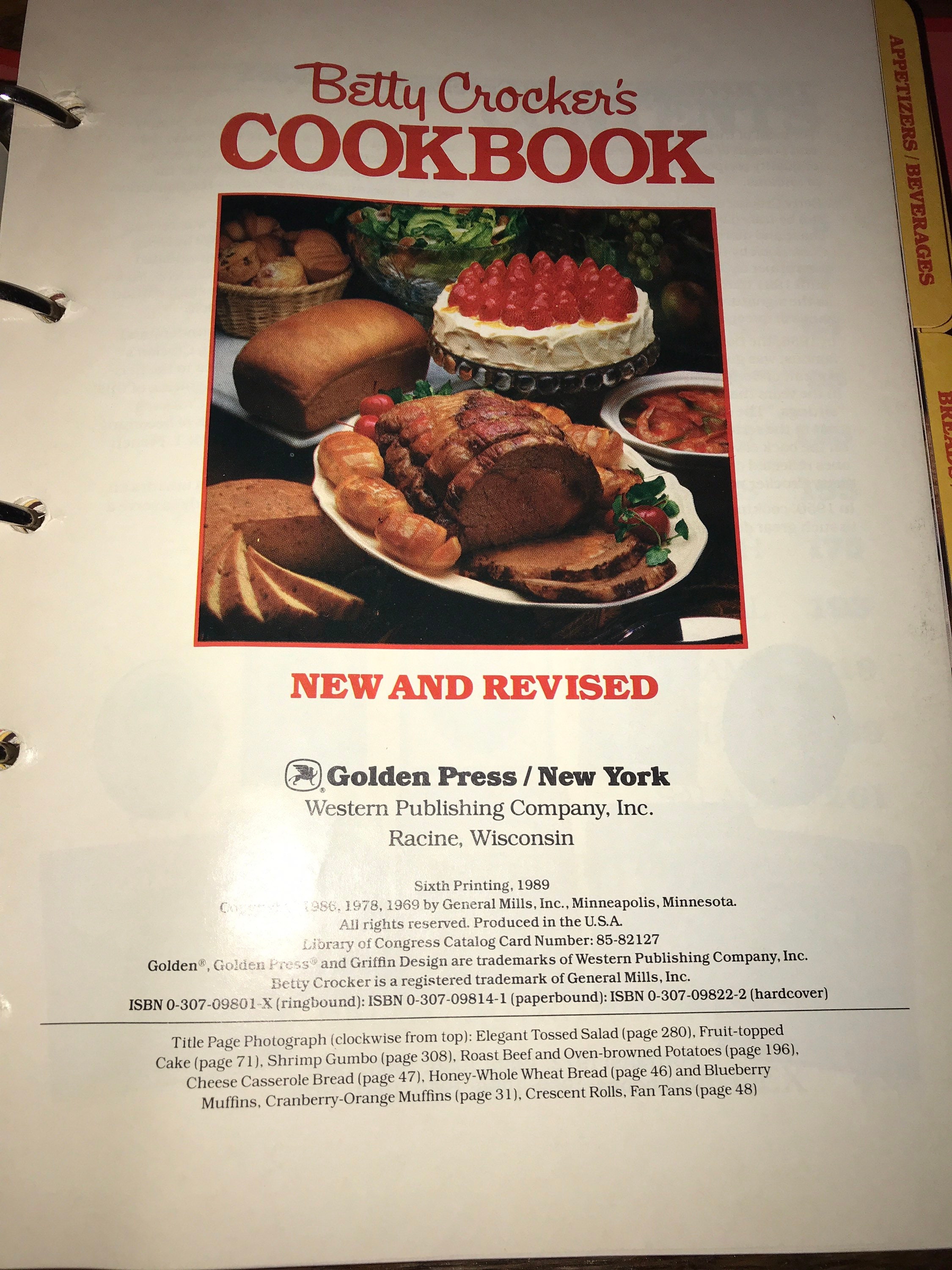 This is a very nice 1986 Golden Betty Crocker Binder Cookbook. The colors are great for decorating. The recipes sound scrumptious! Everyone needs one of these in their collection. It’s in good condition, with only a little wear and tear. The side is faded more than the front and back, like the binder sat by a window where the sun came in and just faded that part of it.