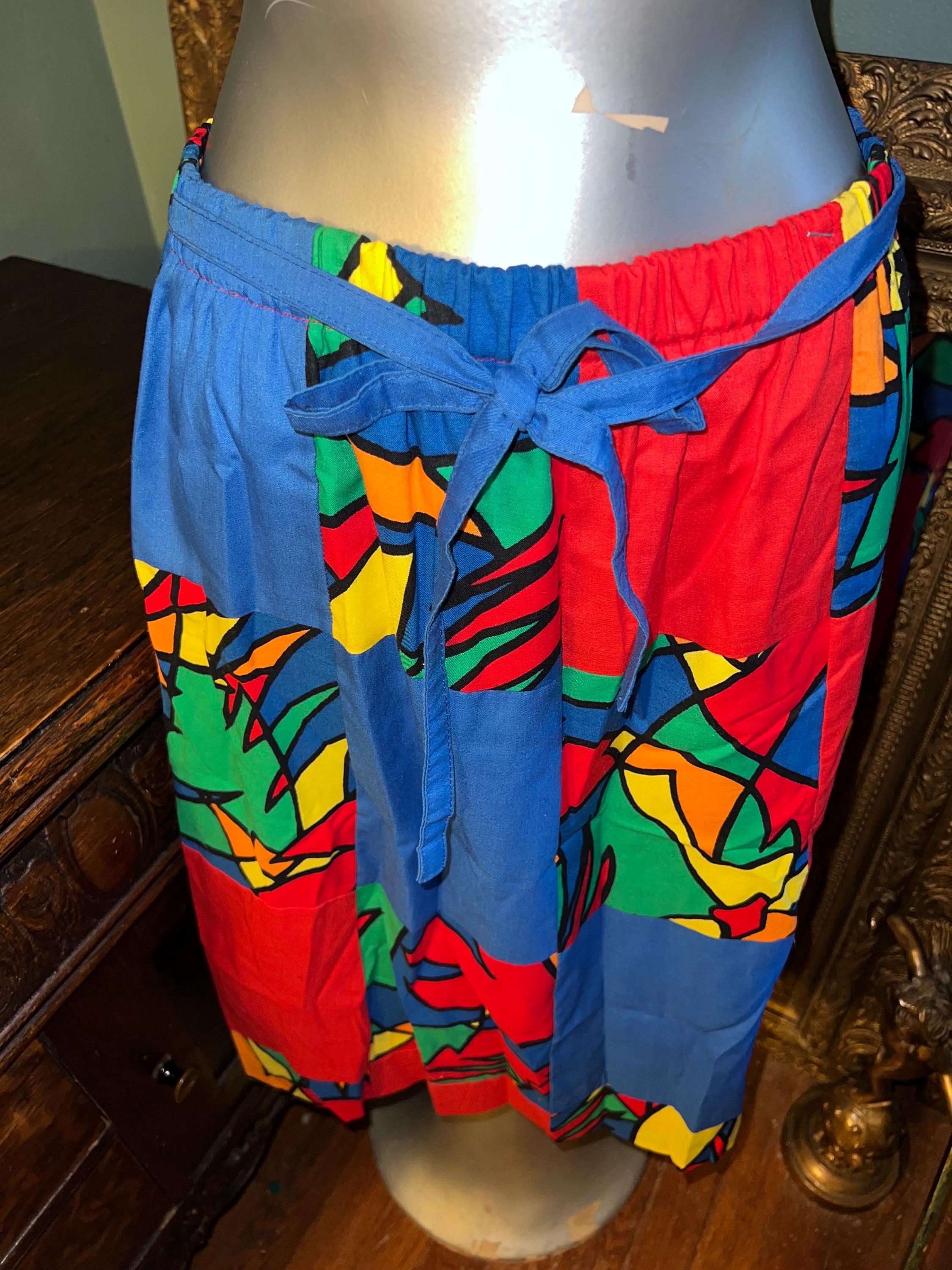 It’s in great vintage condition, looks rarely worn. It has an elastic waist and red thin tie that you can tie at the center or side, or leave hanging, whatever you like! Super cute!