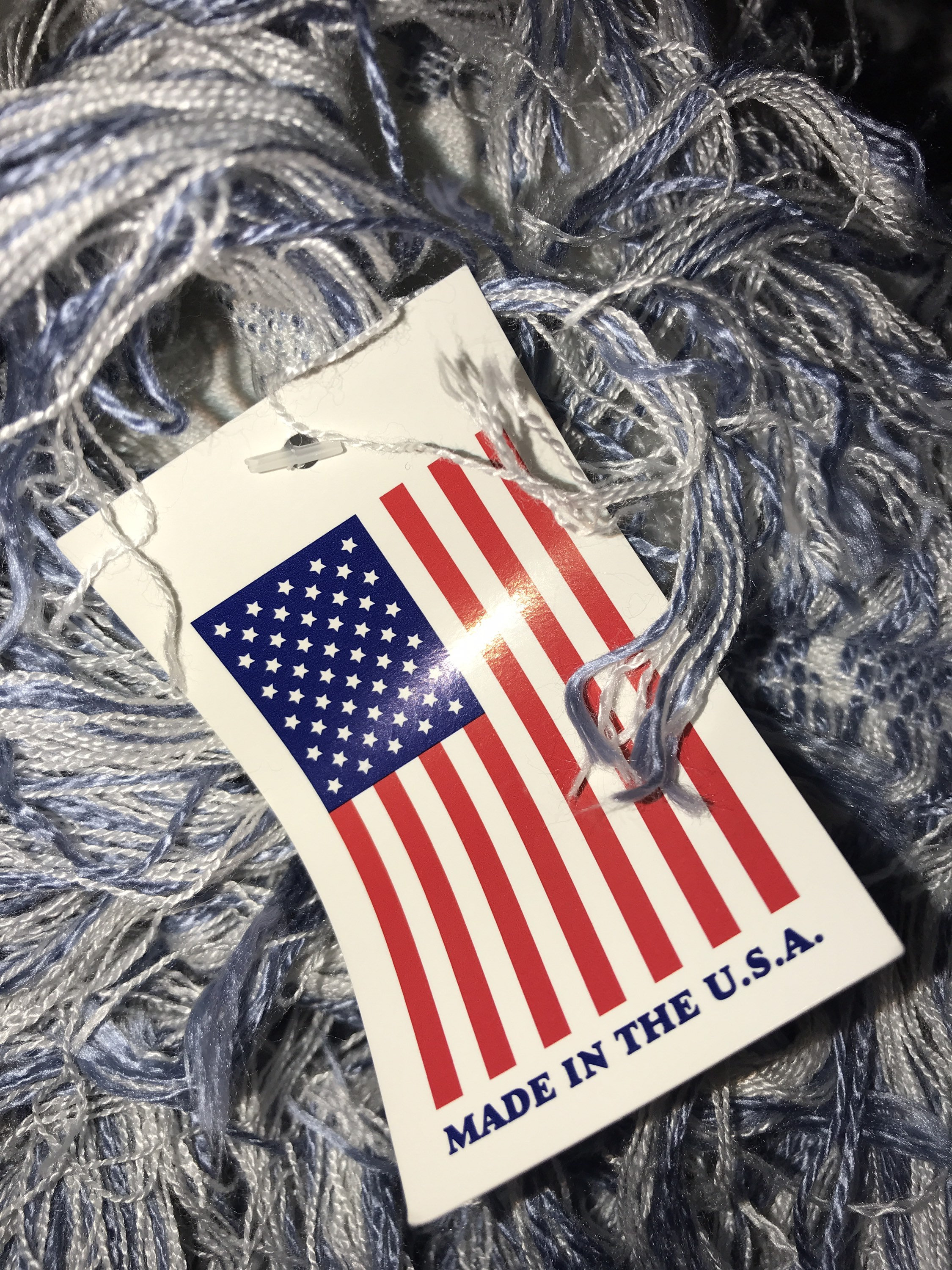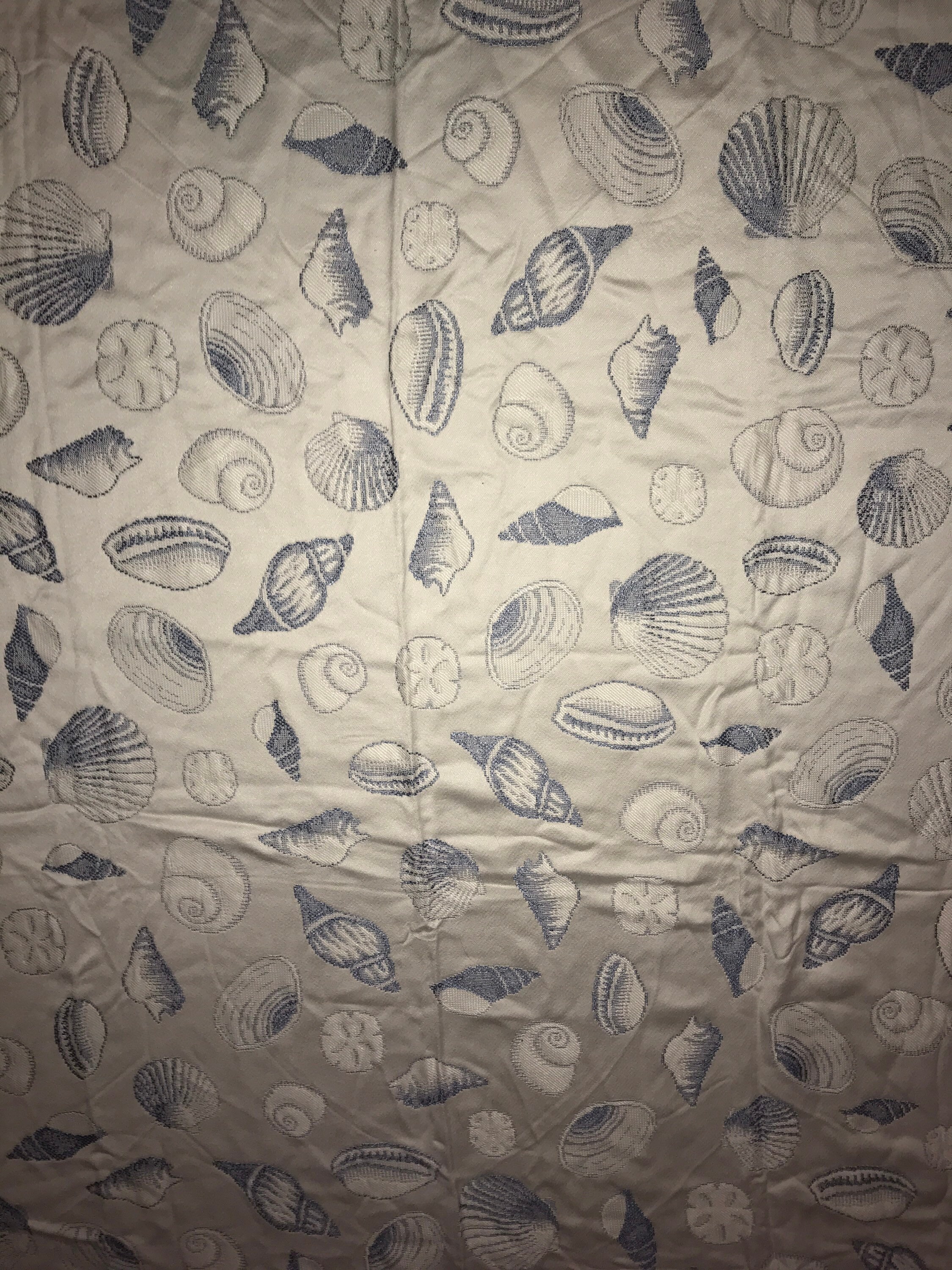 This is a great little possibly chenille throw blanket. It’s new old stock, still has a tag on it. Its beautiful blue and white with seashells, It has fringe. It’s a very pretty color very soft, I can’t even express how soft it is. Excellent chill by the beach blanket. It’s in great condition.