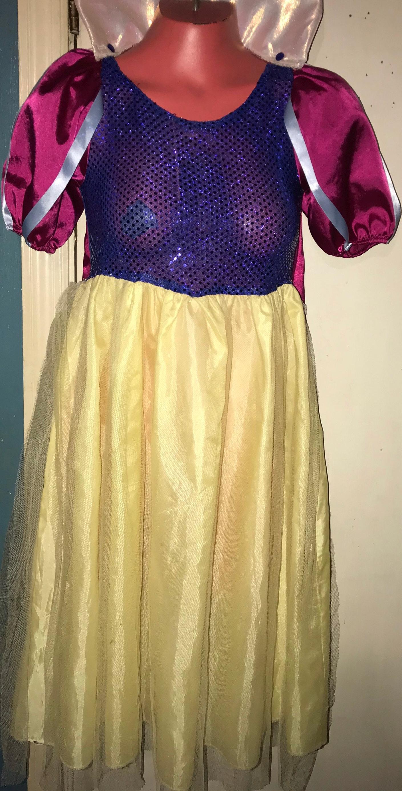 This is a pretty little Snow White dress from the 90’s, Disney Store. The only issue is the little rip of the yellow tulle, (see photo). Oh and also the “red” looks sort of dark pink to me, under lightbulb it looks more red. I don’t know if I’m color blind or what but the Disney Store sold the dress so you’d think they’d make it the correct color! I have not washed it.
