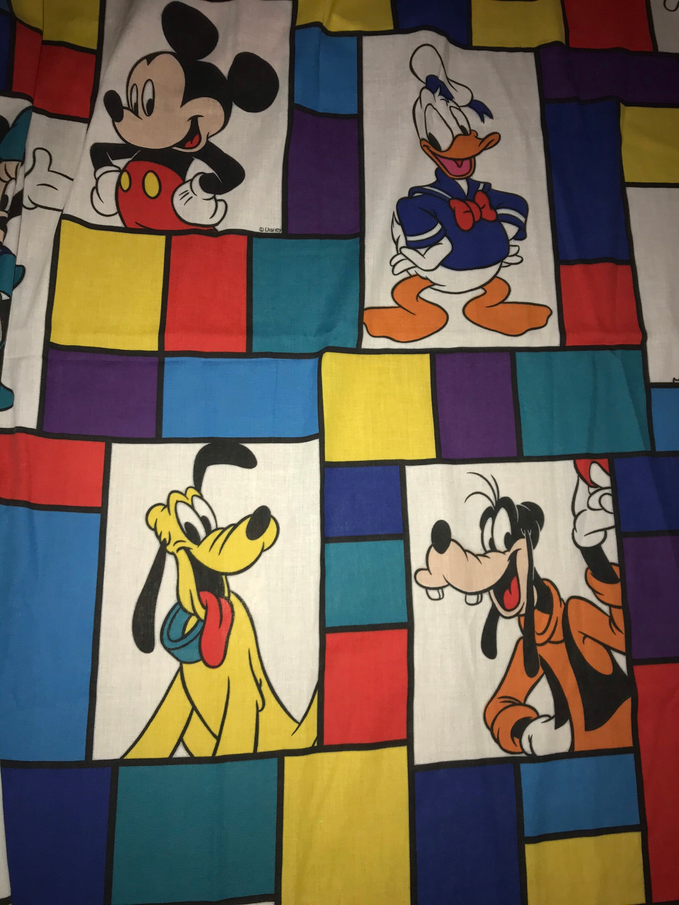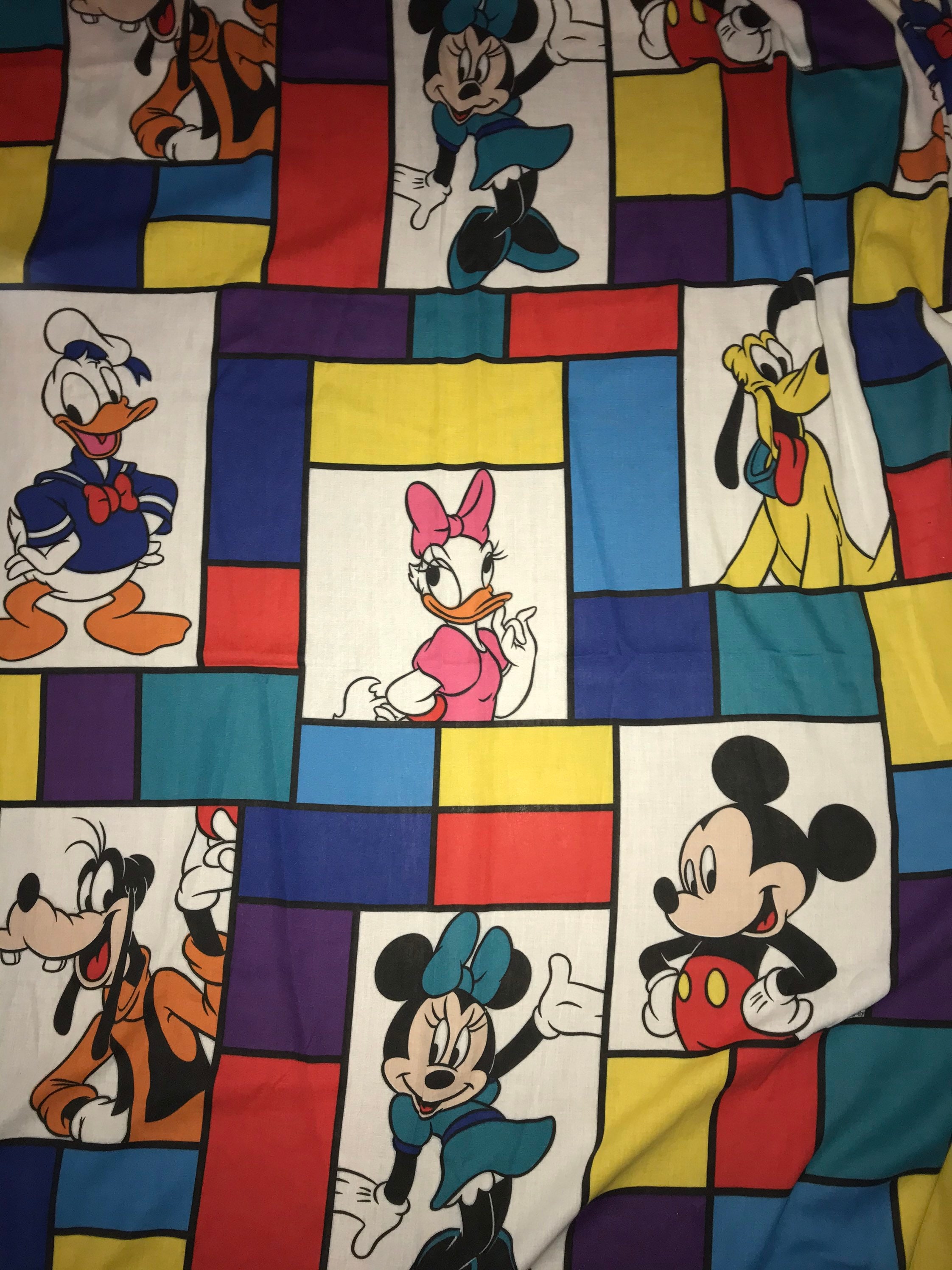 This is a nice twin size FLAT sheet of 1990’s Mickey Mouse and friends color block style.