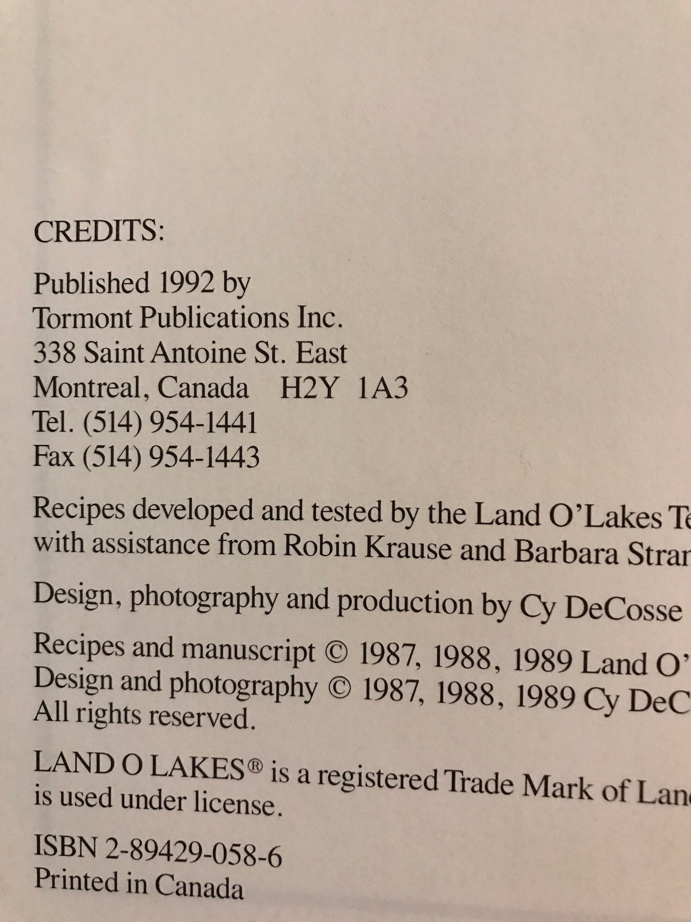 It’s the Land O Lakes Treasury of Country Recipes from 1992. It’s in like new condition, which is surprising because there are so many great recipes in it!