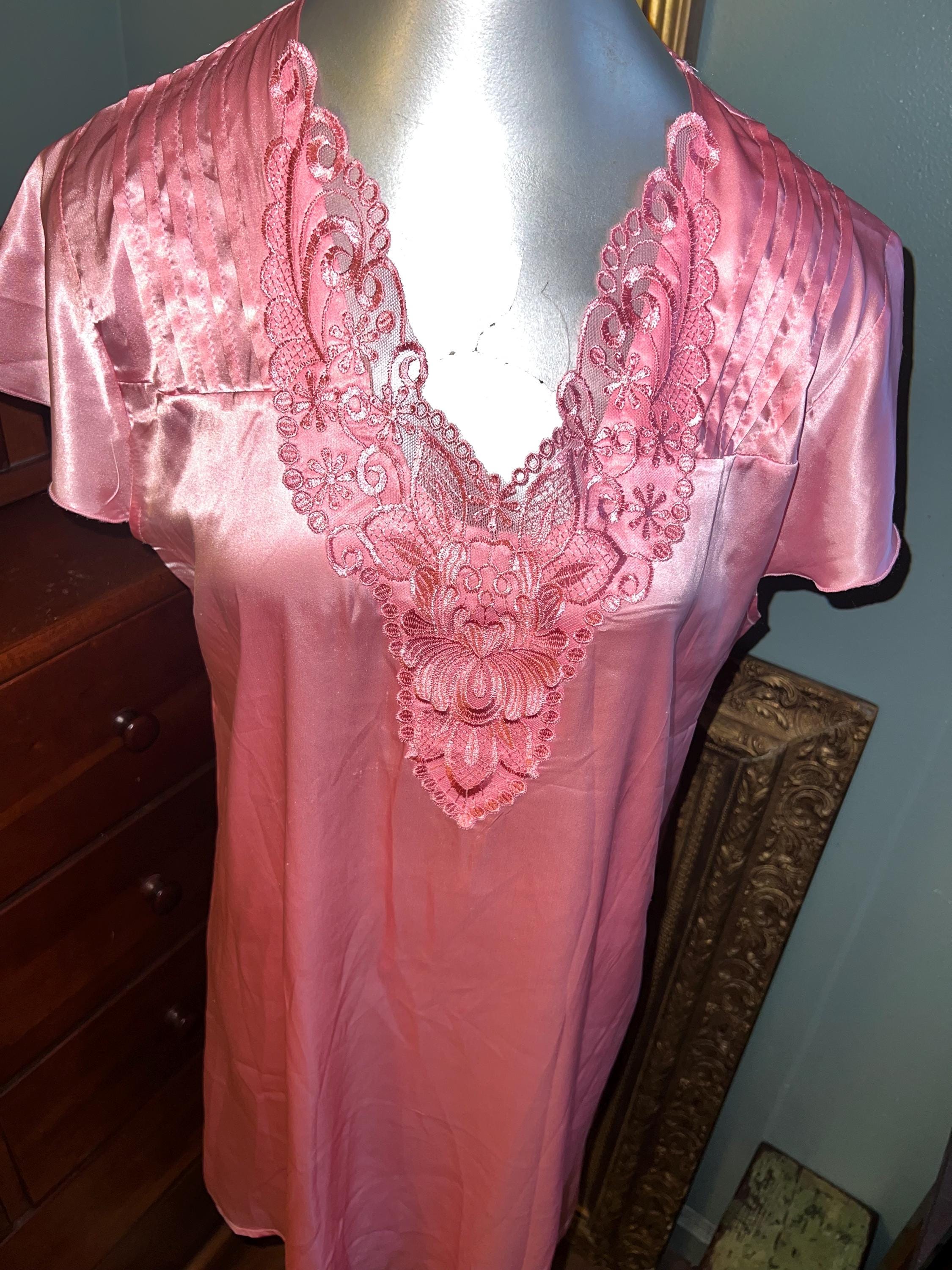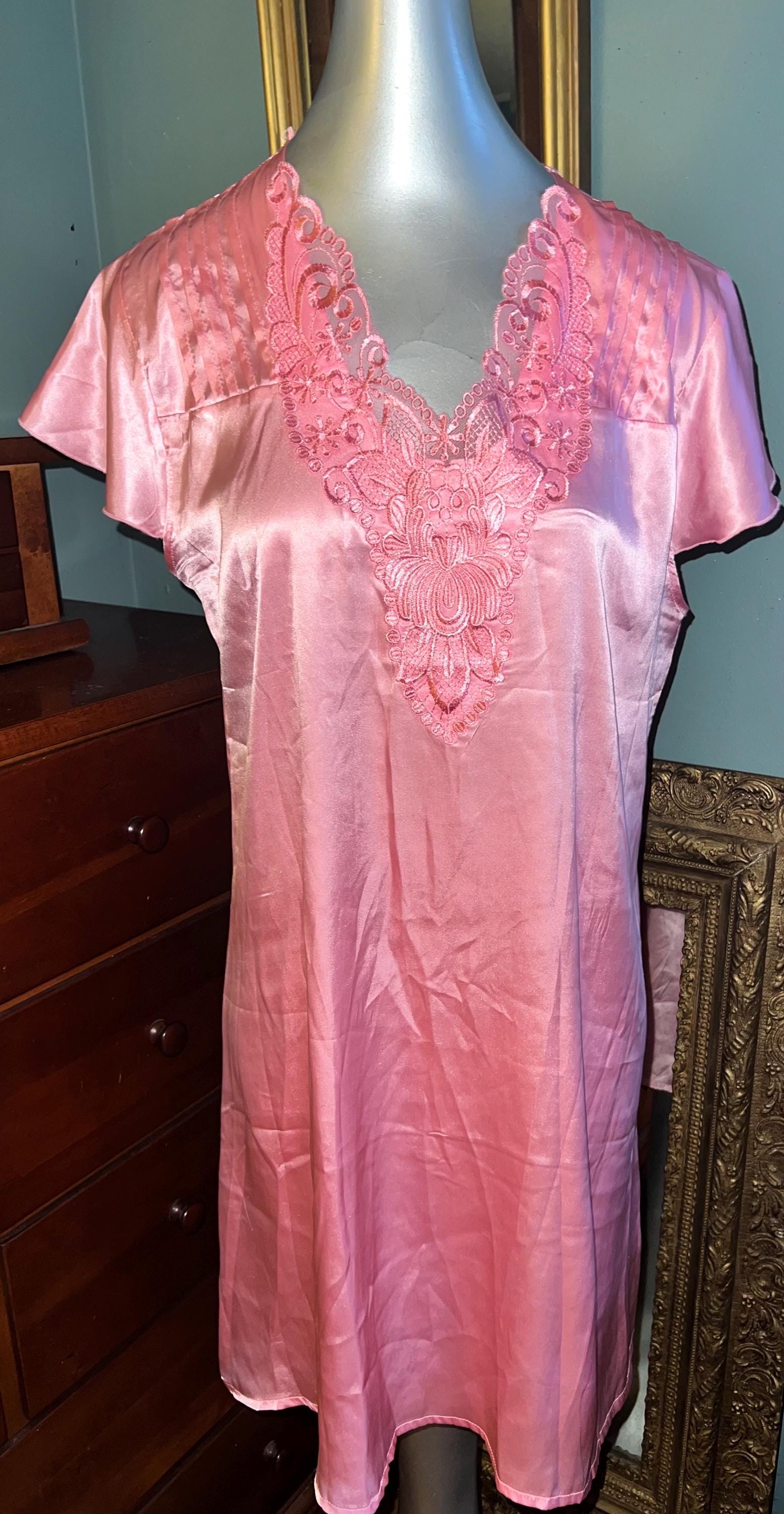 This is a very pretty short light pink satin nightie. It’s in very good vintage condition, it seems basically new.