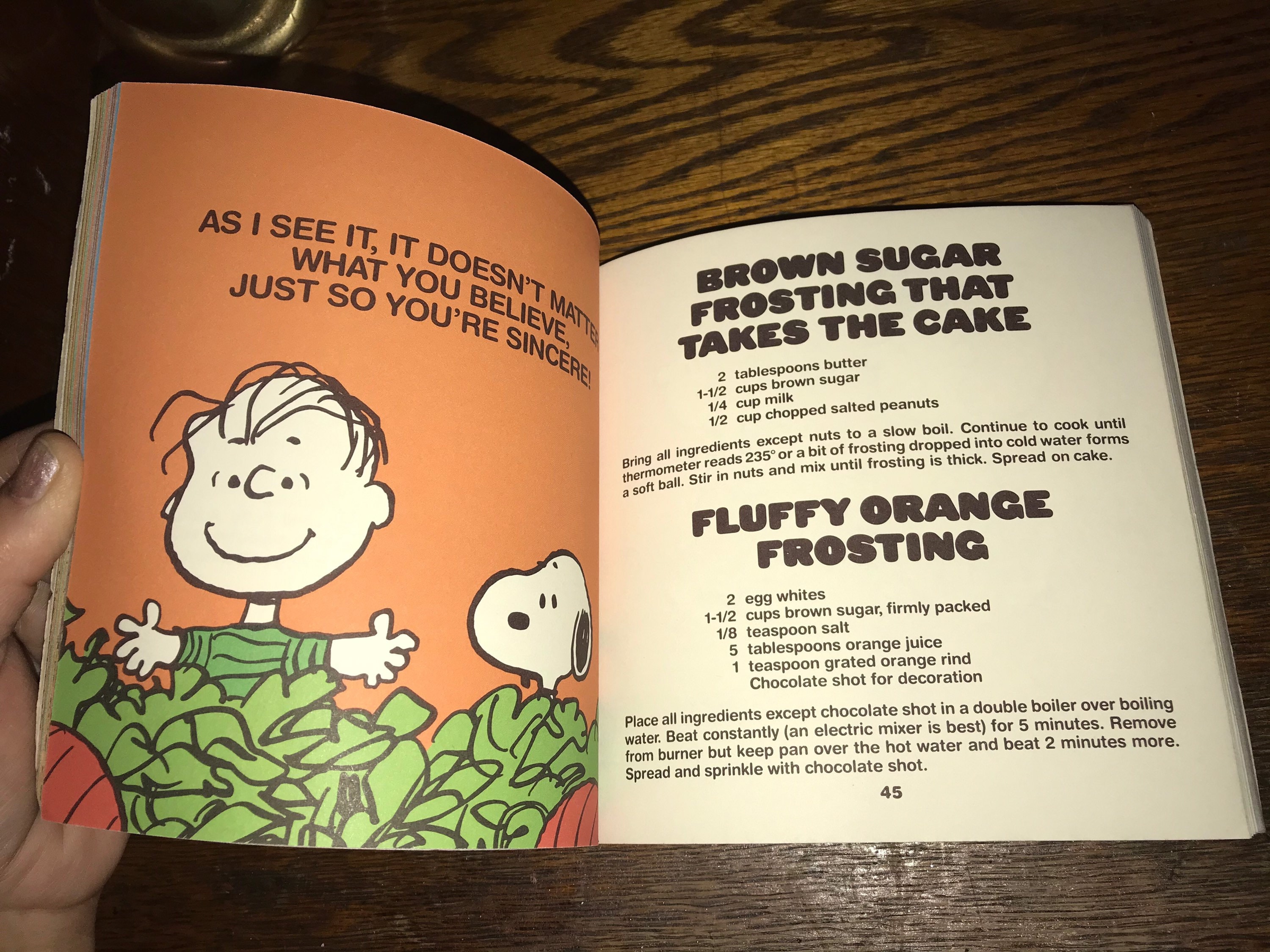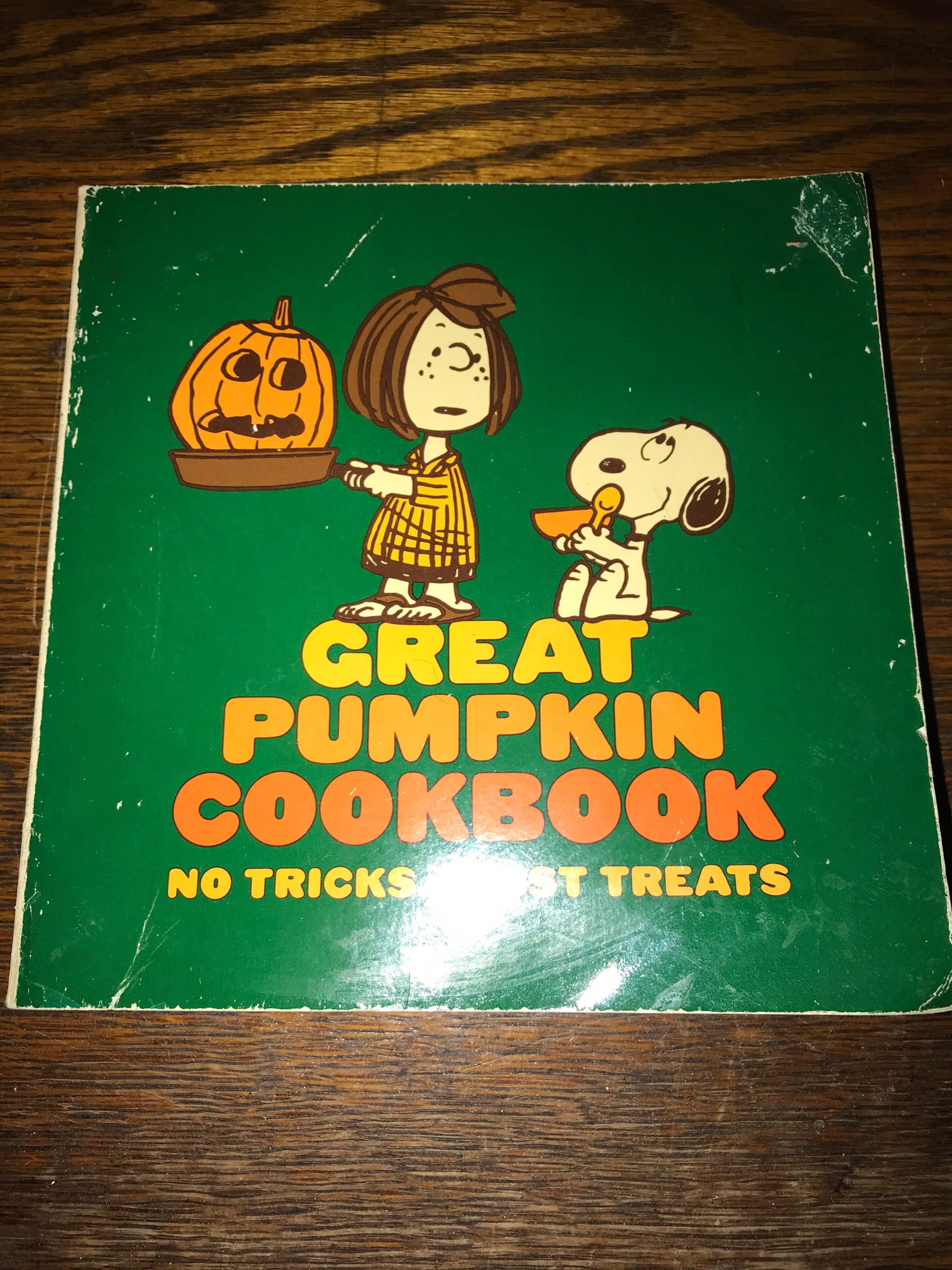 This is a very cool Charlie Brown/Peanuts cookbook by Charles M. Schulz. It’s called “Great Pumpkin Cookbook” From what I can tell it’s pretty rare. The cover has seen better days and there is some writing in the inner cover page but no writing anywhere else in the book and the pages are in really good condition.