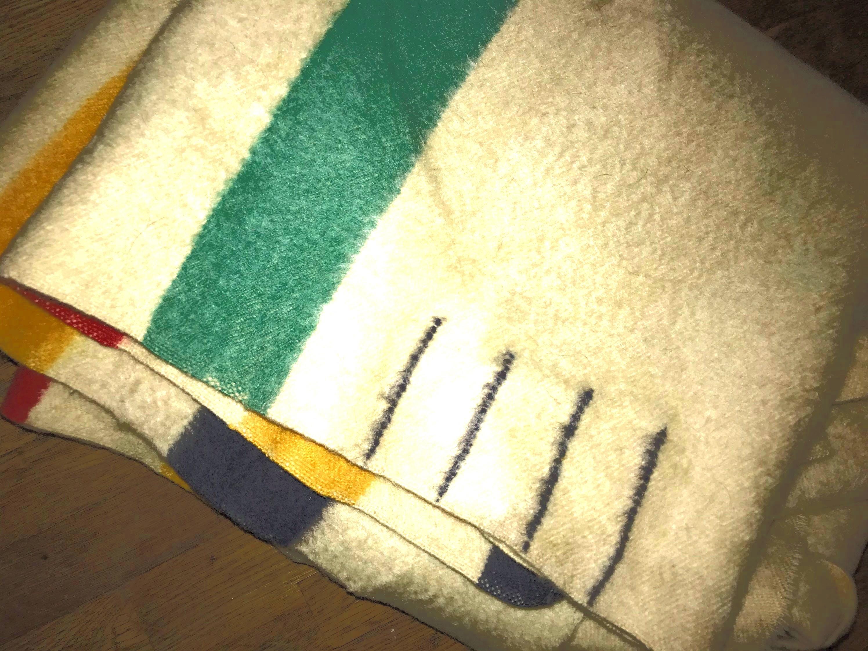 This is a wonderful large four point Whitney Point all wool blanket. It’s the iconic revival stripe and is in good vintage condition but does have a few spots here and there, see photos.