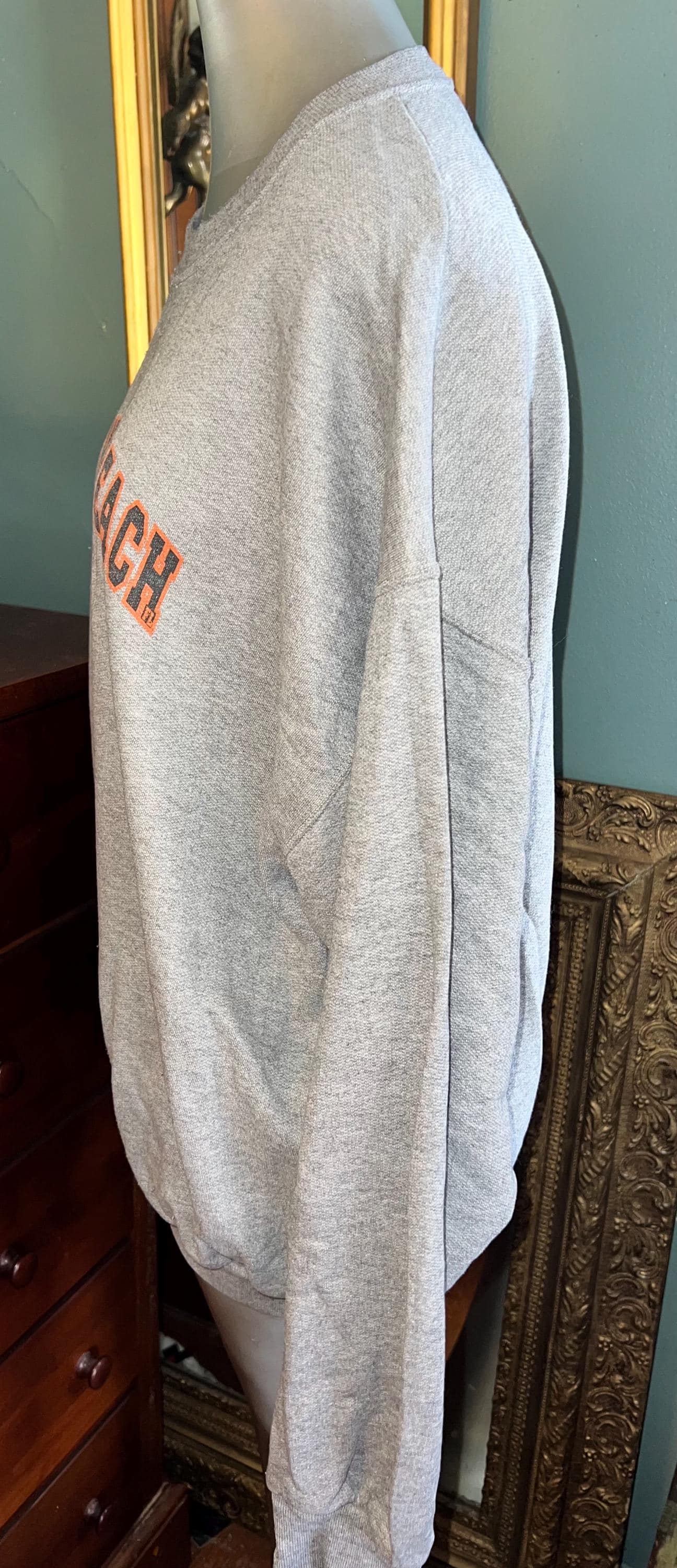 This is a super cool distressed Hollywood Beach sweatshirt from the 80’s. Its just like one of those hang out in it all day sweatshirts. It’s in distressed vintage condition, with one little stain on the front.