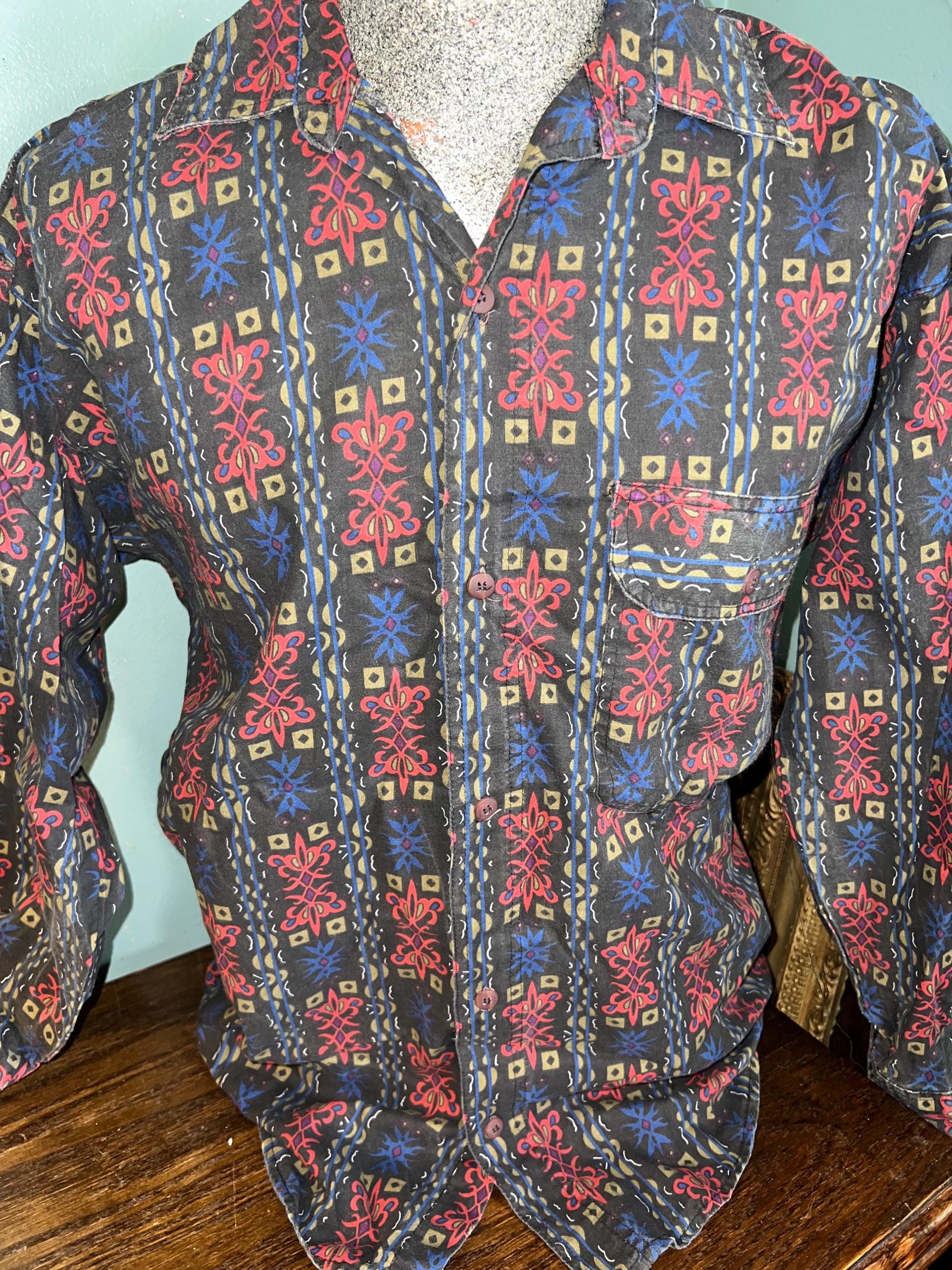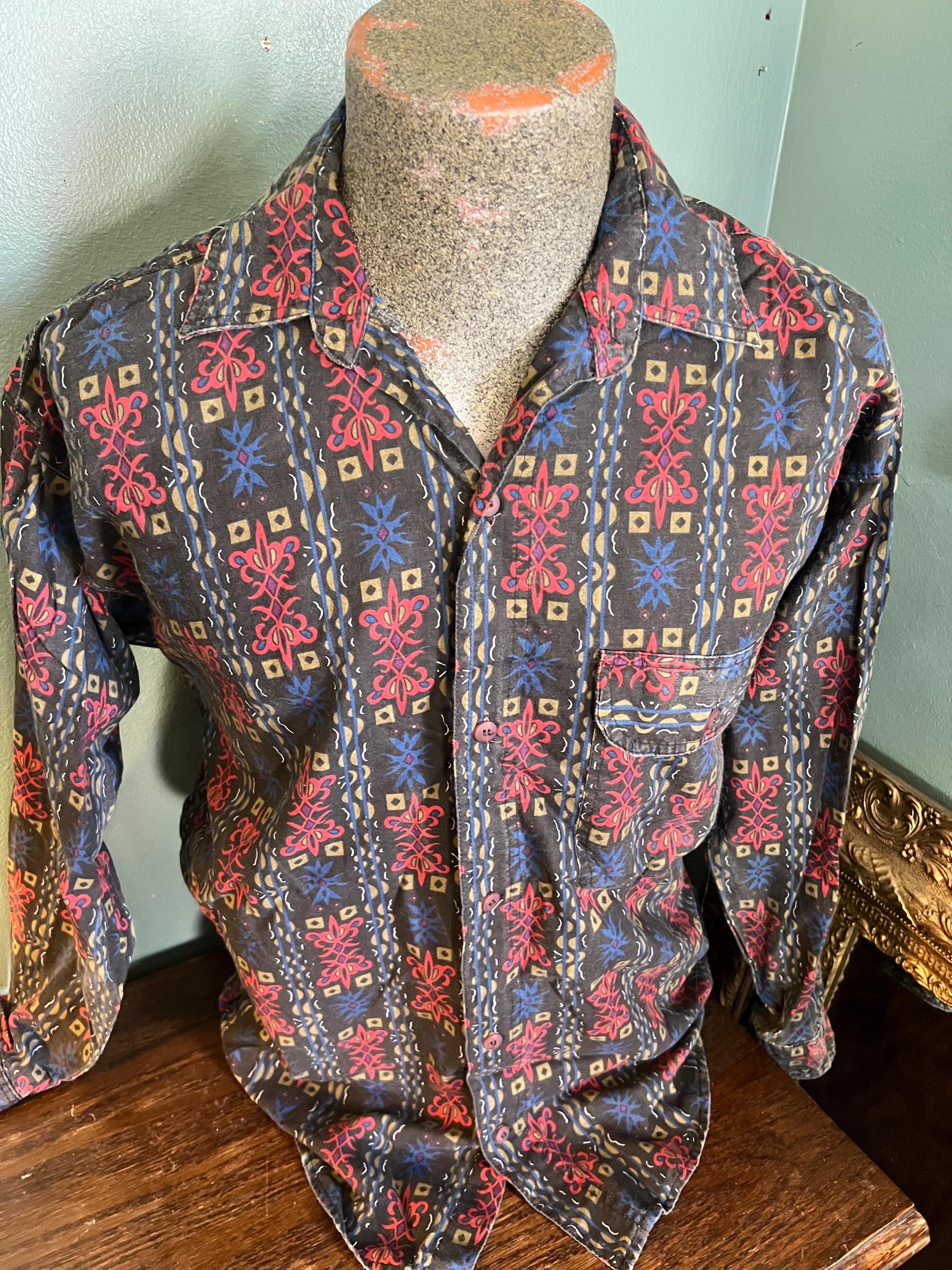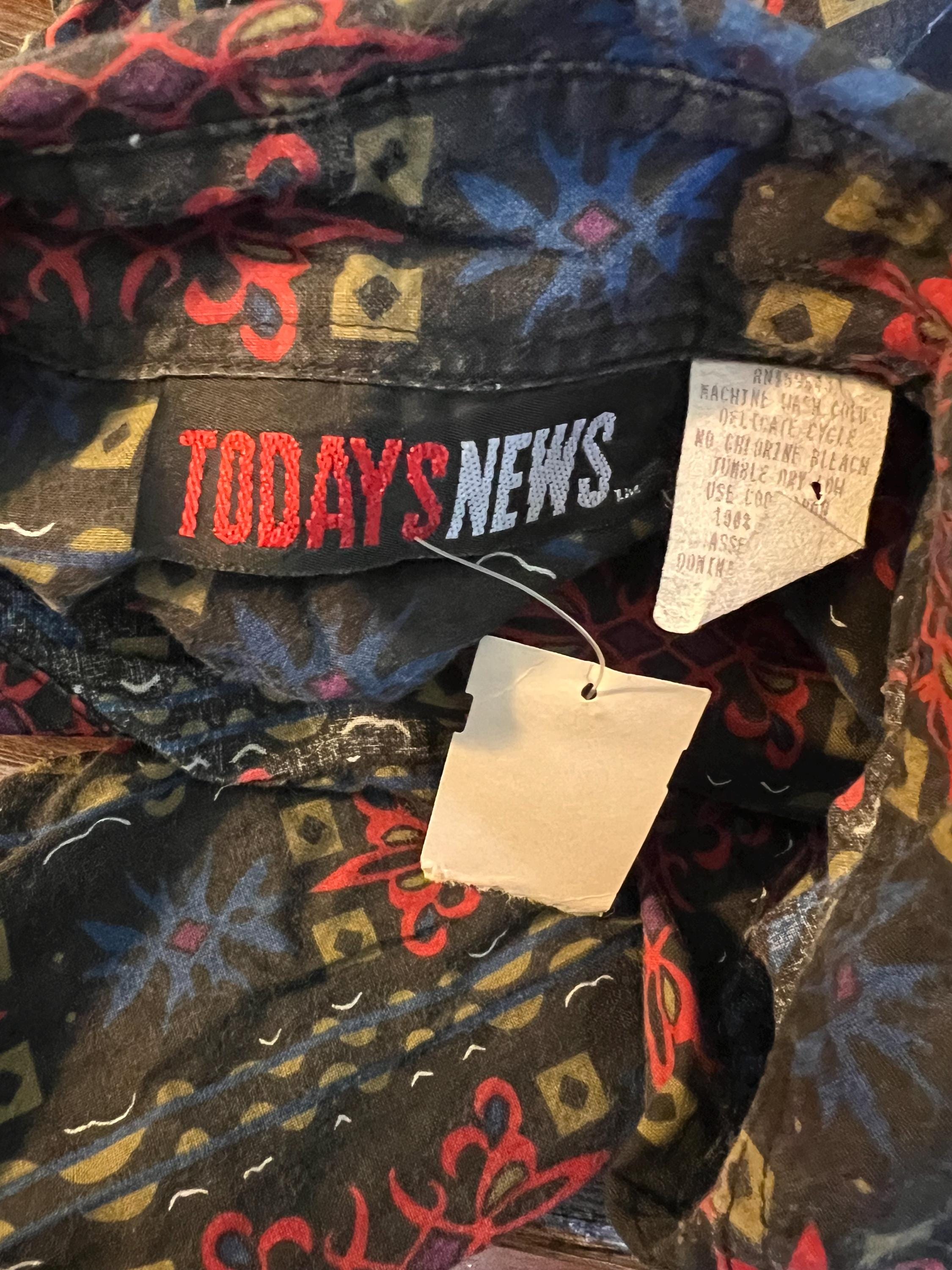 Super nice long sleeve mens button down 90’s shirt. brand new with tags made by Todays News. The pattern is excellent! It’s in great vintage condition!