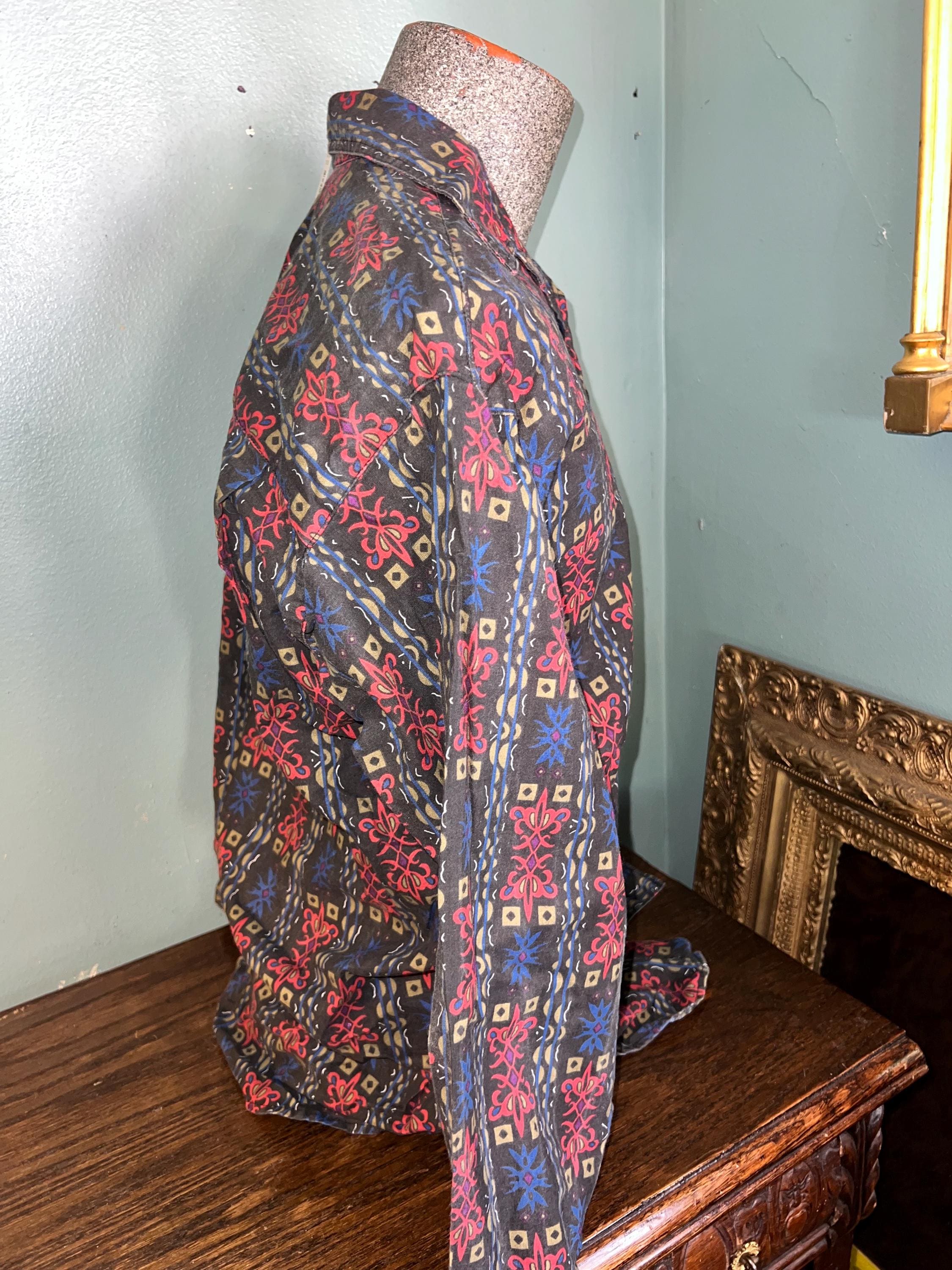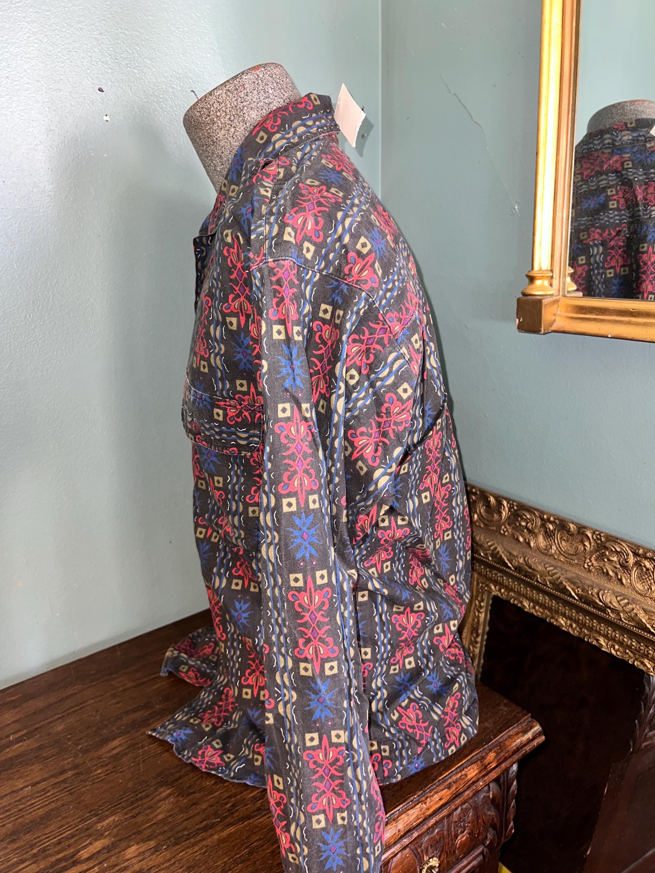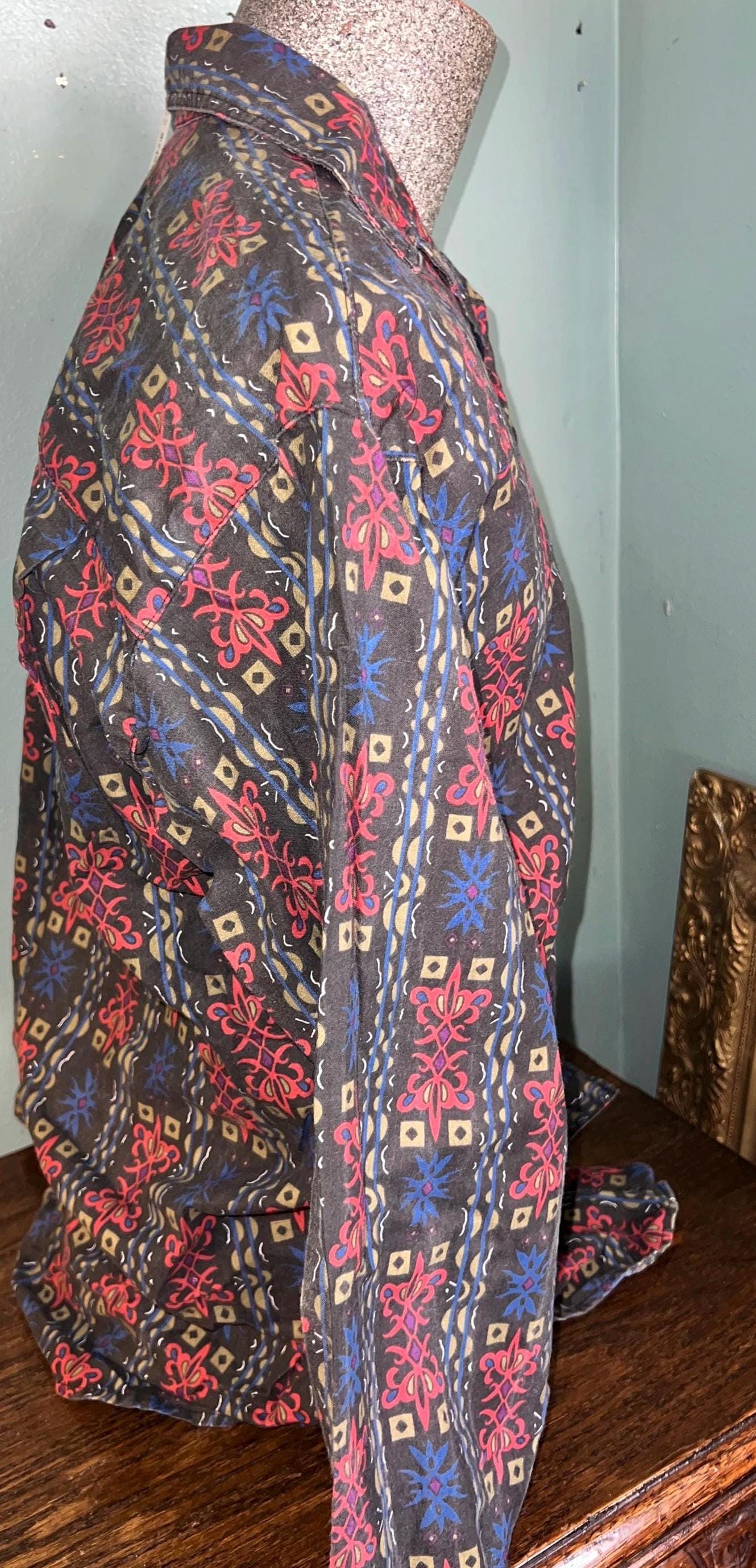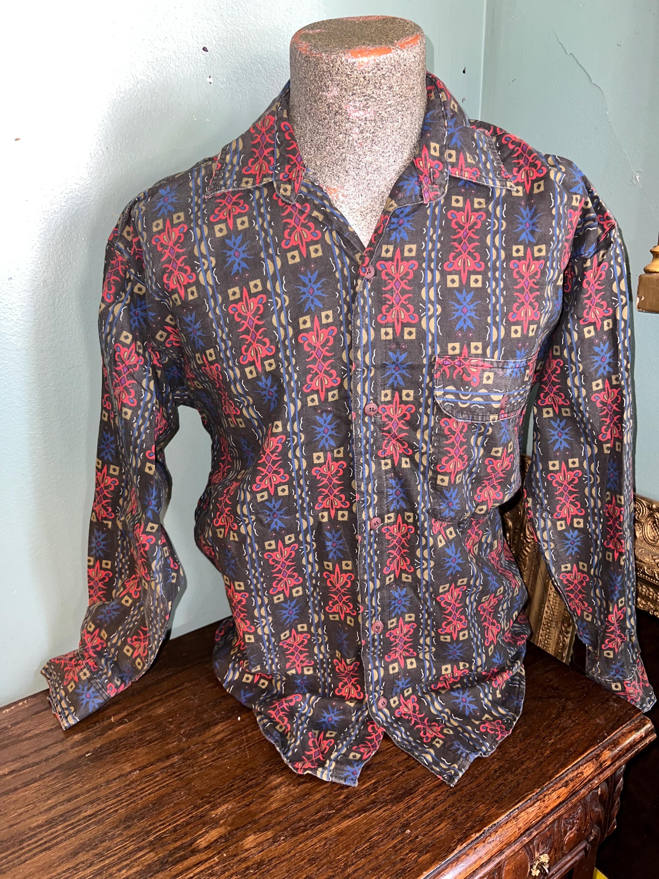 Super nice long sleeve mens button down 90’s shirt. brand new with tags made by Todays News. The pattern is excellent! It’s in great vintage condition!