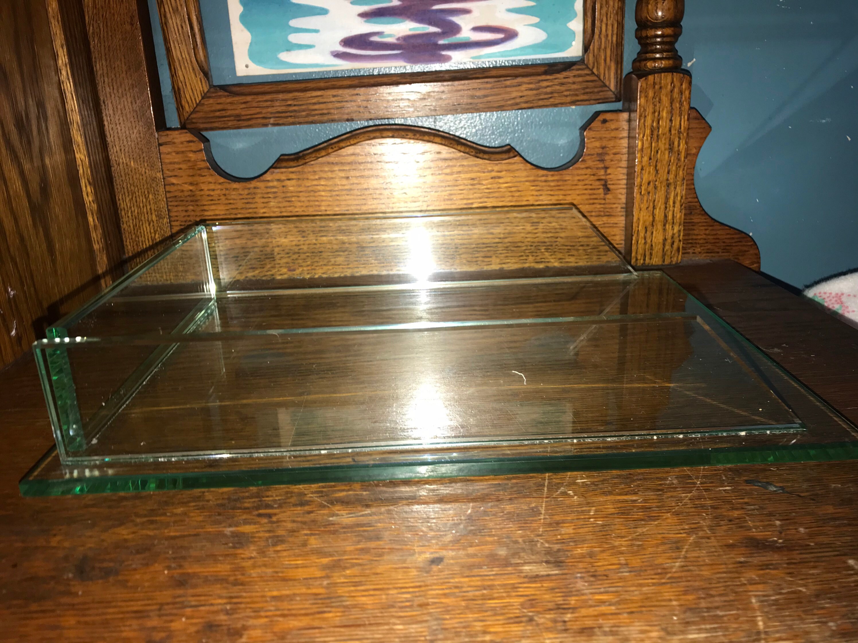 This is a nice, really sleek looking glass desk tray. It is very cool and in good vintage condition.